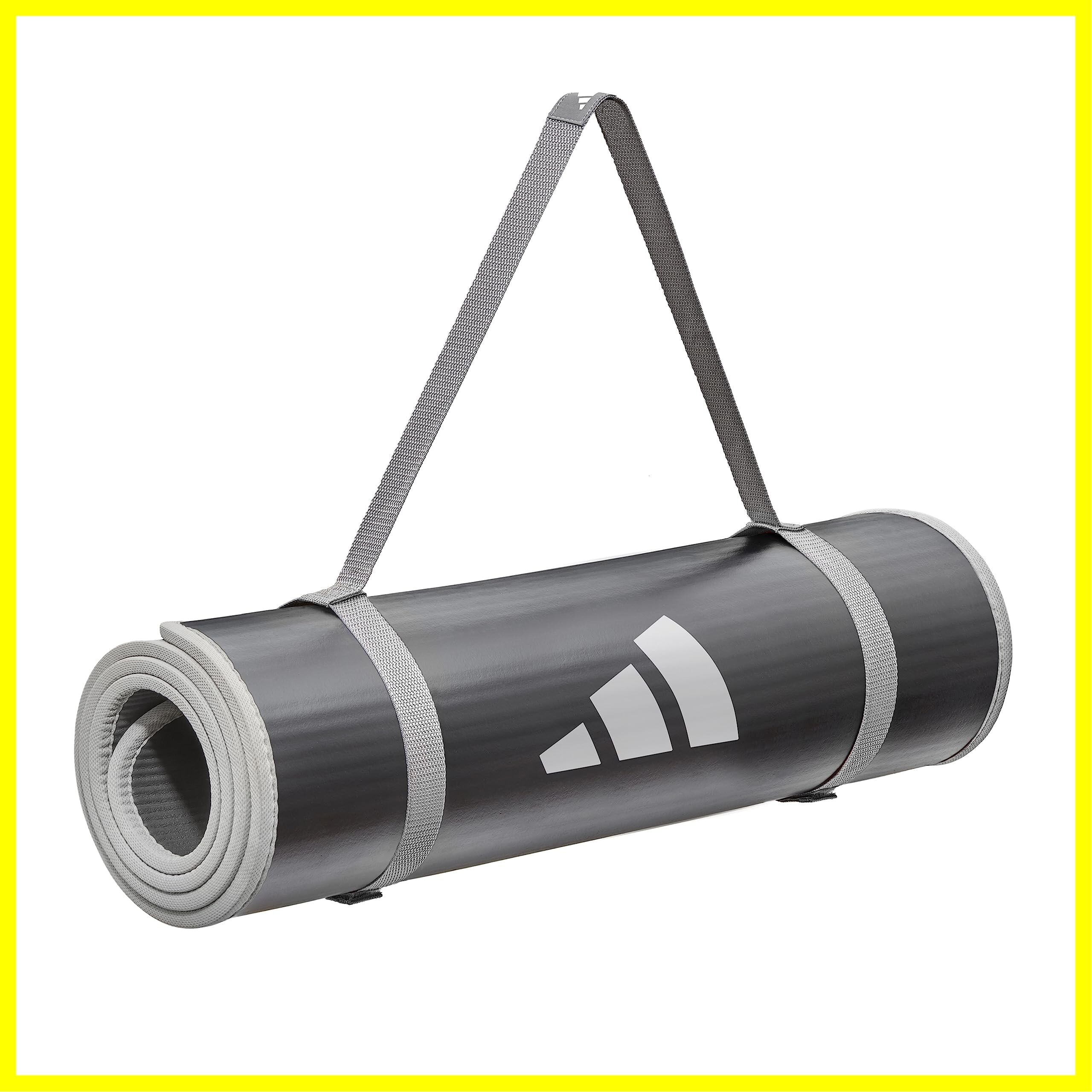 adidas(アディダス) トレーニングマット/フィットネス/ヨガ 10mm 厚め 幅広 耐久性 滑り止め キャリーストラップ付き ADMT-12235GR グレー