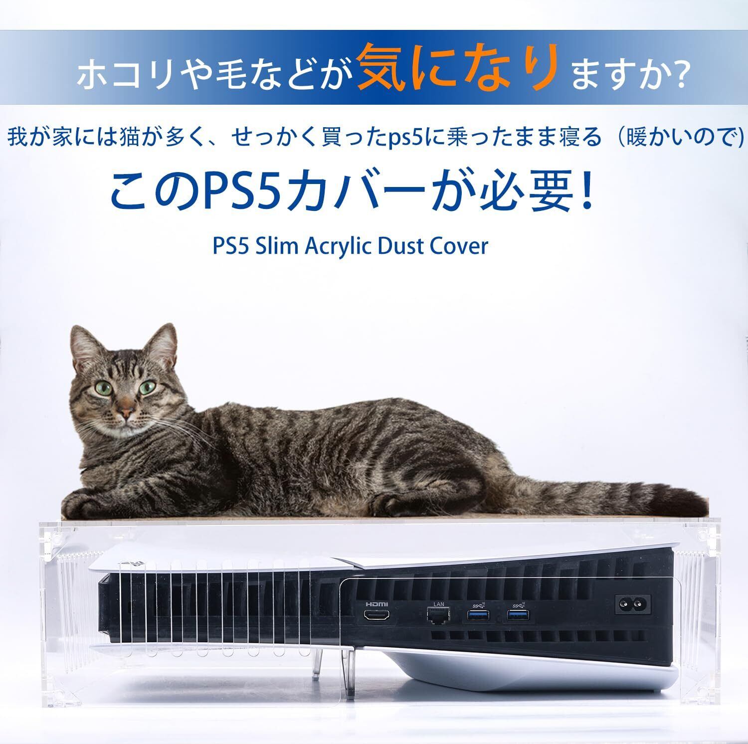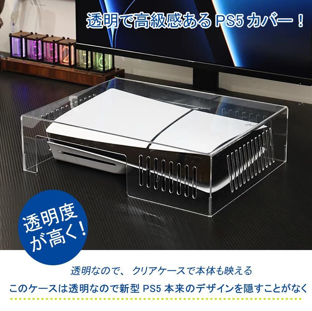 PS5 Slim用 カバー PS5 Slim ダストカバー 横置き PS5用 ケース Blitzowl PS5本体用埃カバー PS5周辺機器 透明 アクリルケース プレイステーション5 横置用 ホコリ防止 防塵 冷却 保護カバー PS5 slimのみの対応 (PS5 Slim用)