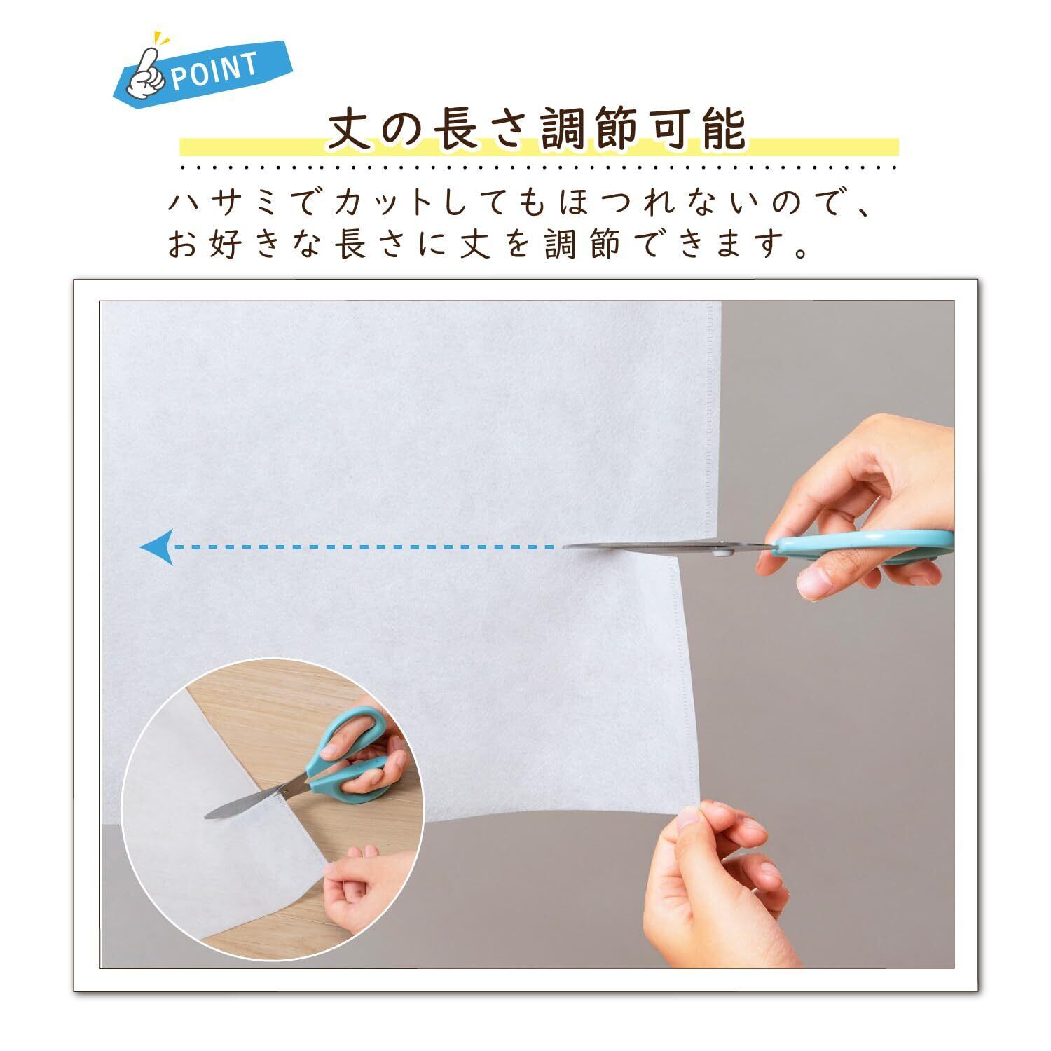 【裾をハサミでカット可能】:裾をハサミでカットすることができるので、洋服の長さに合わせて使える。