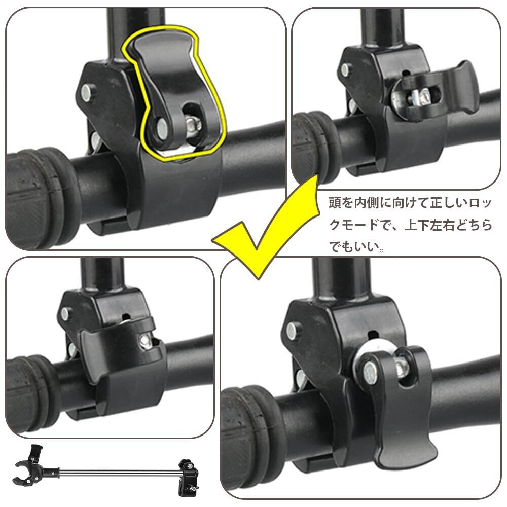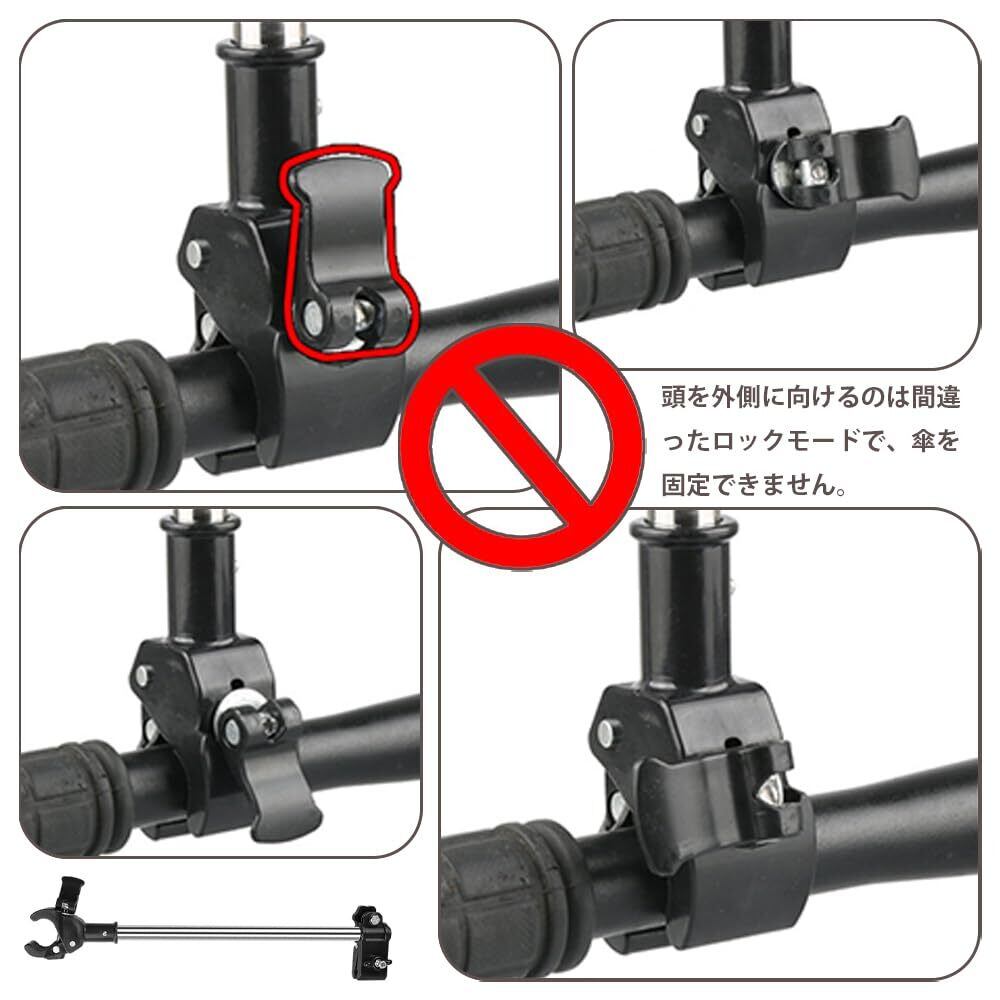 【幅広い用途】自転車や車椅子、ベビーカーなど幅広いハンドルに取り付け可能。雨の日には傘を固定し、晴れた日にはUVカットにも活用可能。アウトドアやサイクリングなど様々なシーンで快適に使用可能。