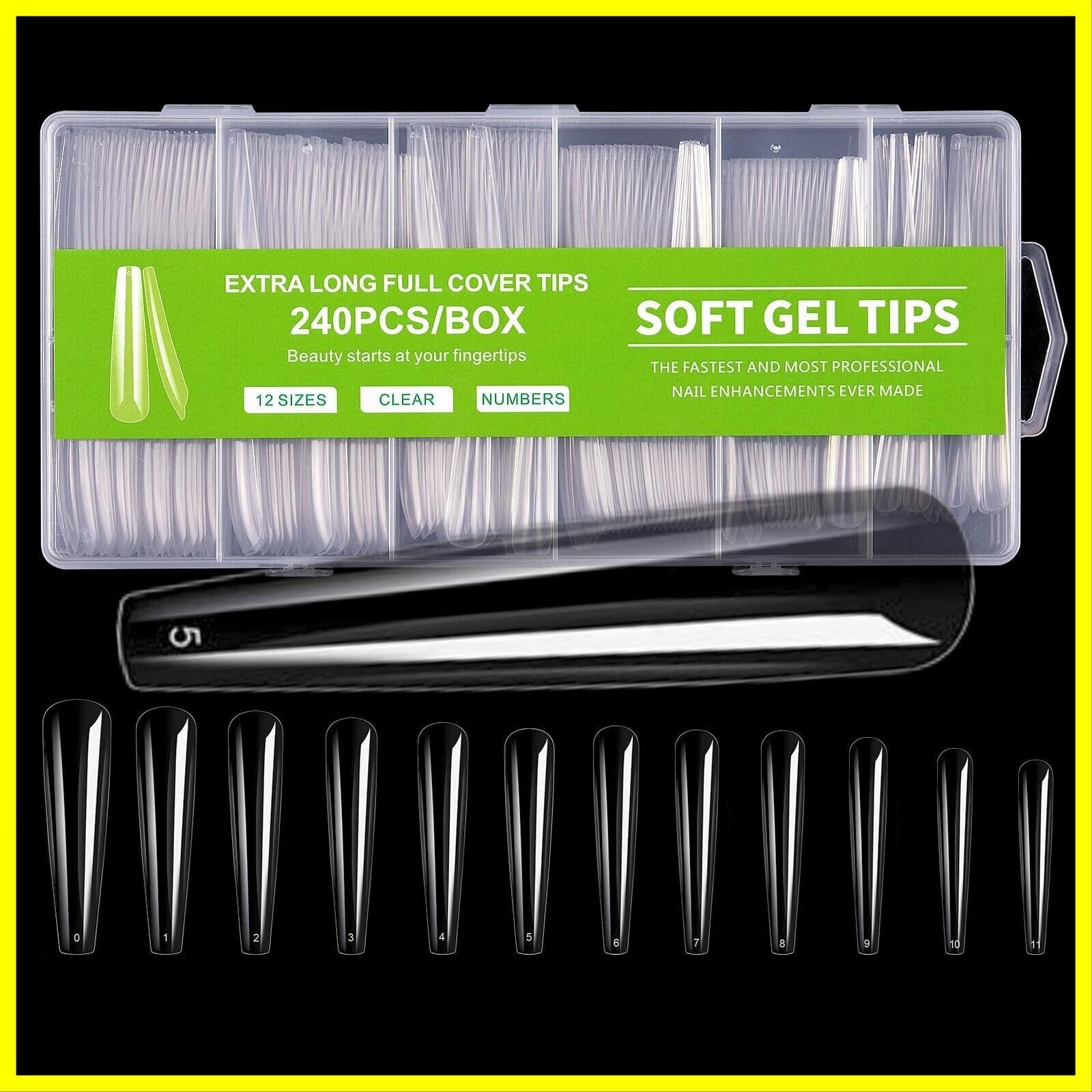 COLORBIRD ネイルチップ ロング スーパーロング 240枚 超鬼ロング クリア ギャルネイル 付け爪 (バレリーナSL)