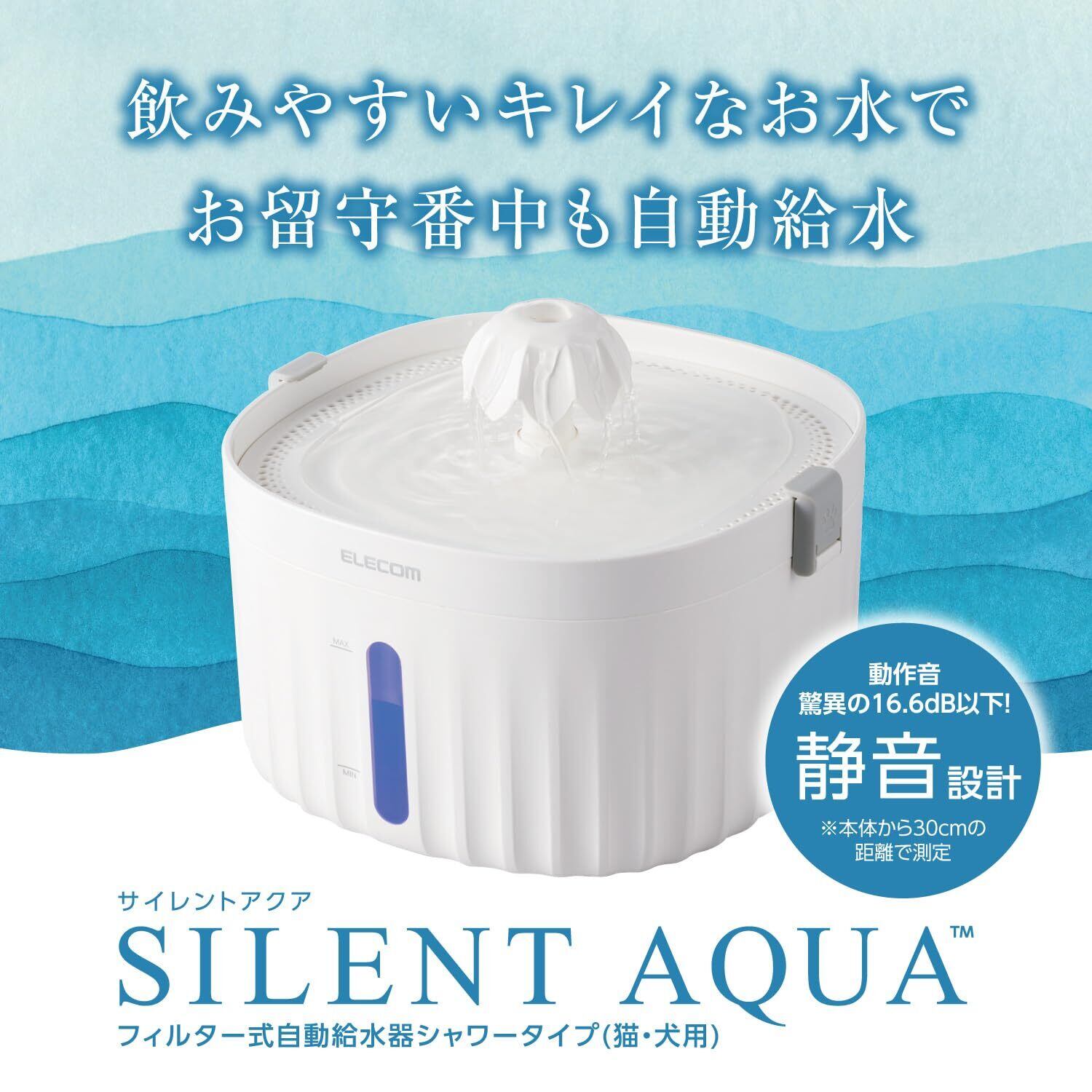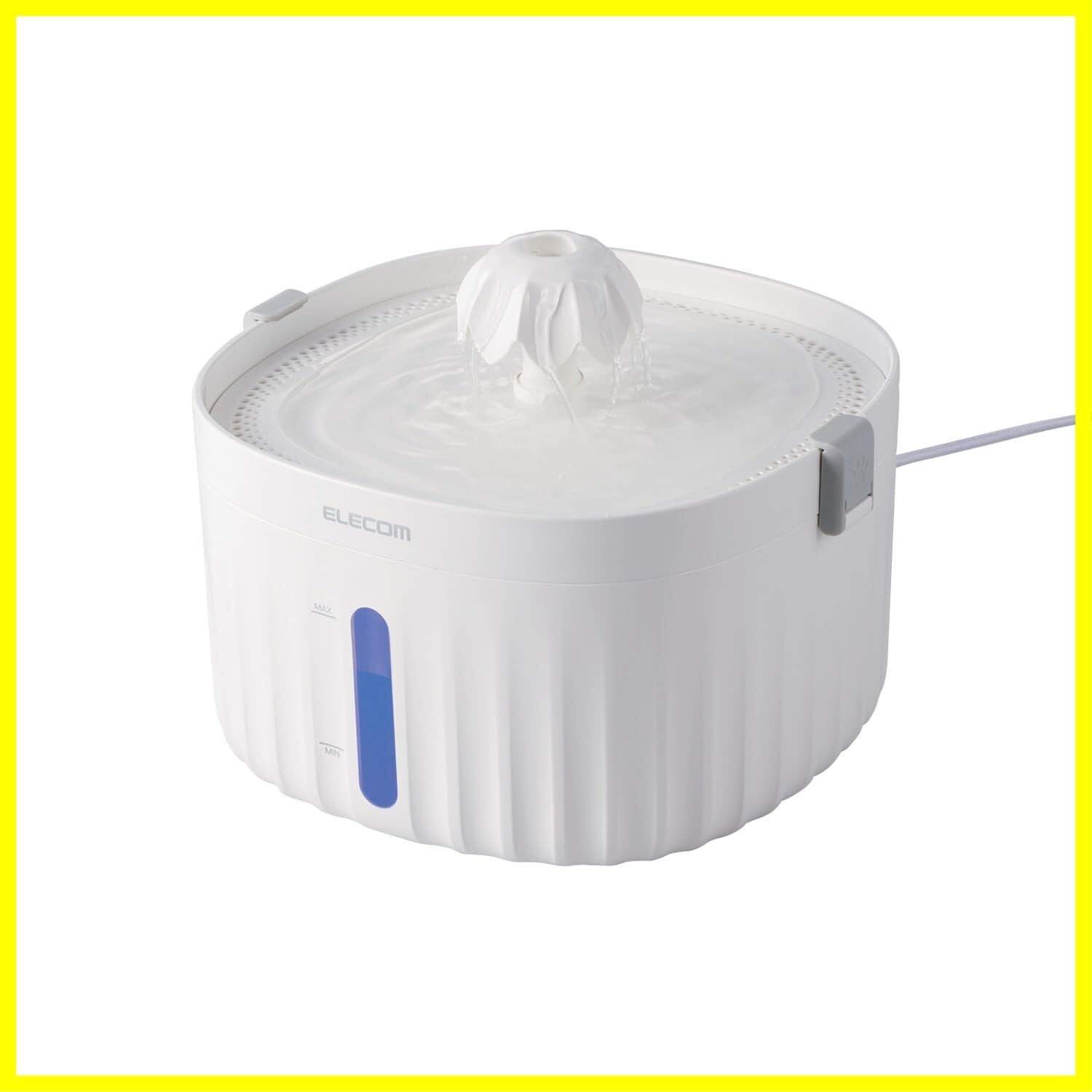 エレコム 自動給水器 容量2L 静音 騒音レベル16db以下 フィルター式 高さ調整可能 ロック機能付 4つの水流 猫 中小型犬用 サイレントアクア 幅204×奥行191×高さ154mm ホワイト PET-WD01WH