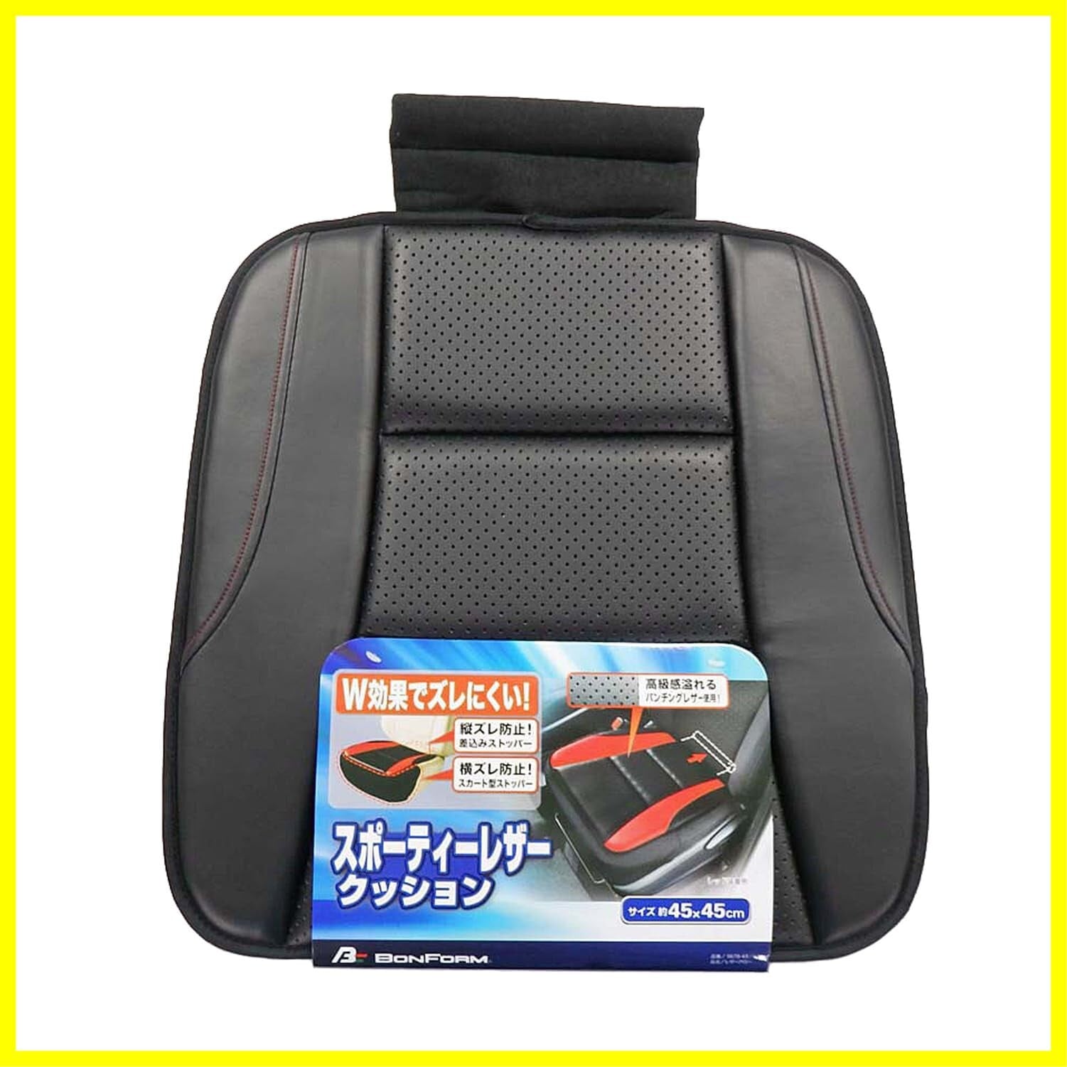 ボンフォーム(BONFORM) シートクッション レザーアロー 軽/普通車 ヒップ型 スカート型ストッパー付き パンチングレザー ヒップガタ45x45x2cm ブラック 5678-43BK