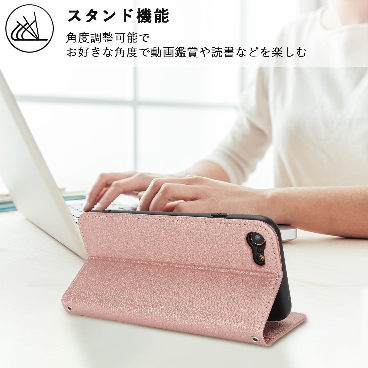 【Hamany】 対応 iphone se ケース ショルダー 手帳型 iphonese第3世代 ケース ストラップ カード収納 スタンド機能 iphone8 ケース ショルダー マグネット式 レザー iphone7 ケース 手帳型 耐衝撃 耐久性 耐摩擦 -ローズゴールド