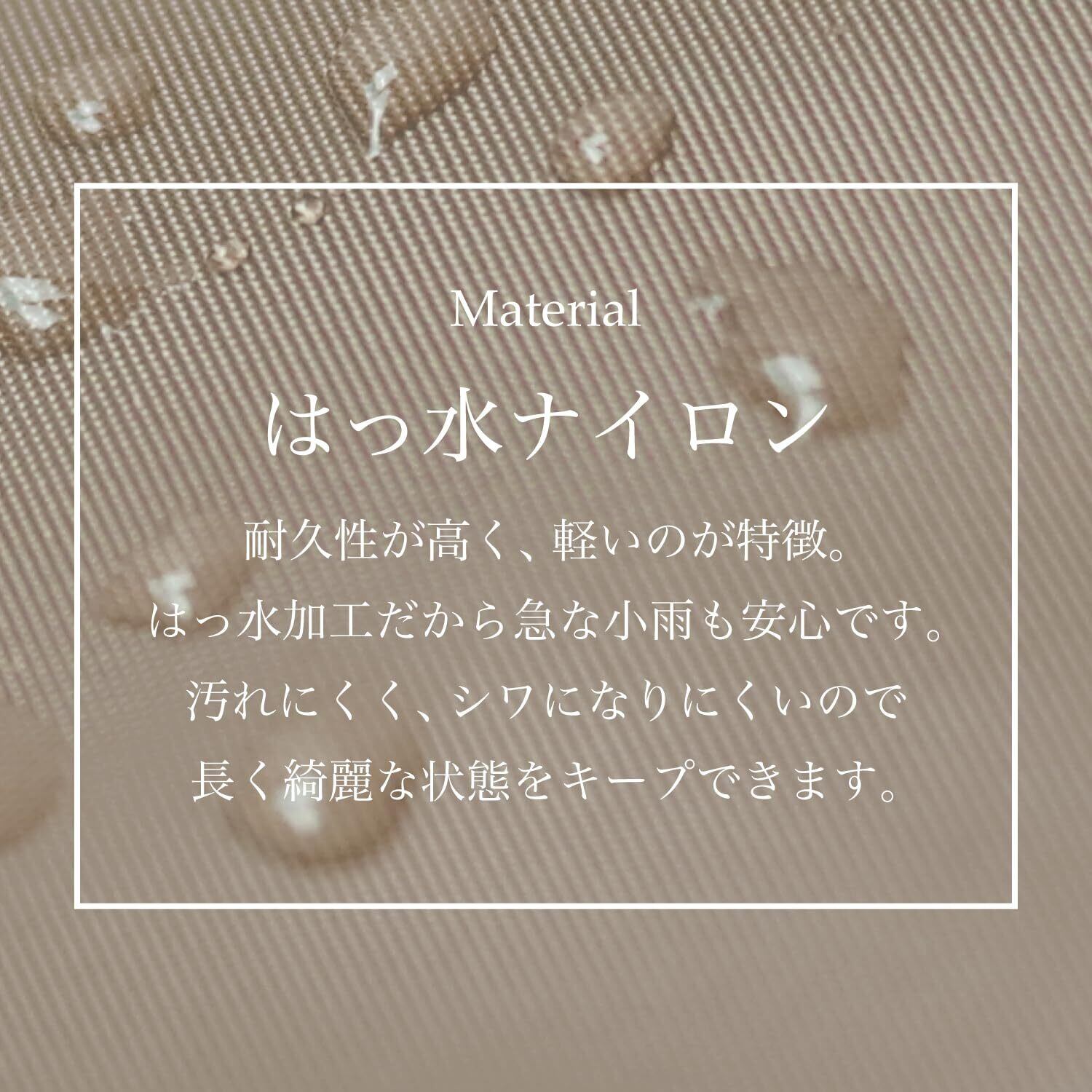 【安心の撥水加工!】ナイロン素材を採用しているため、突然の雨にも安心。撥水性があり、大切な荷物を守ります。軽量ながらも丈夫な牛革の持ち手が、耐久性を高め、長くお使いいただけるアイテムです。