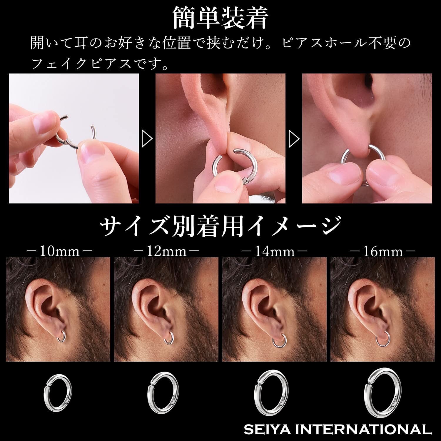 [SEIYA INTERNATIONAL] イヤリング メンズ フェイクピアス イヤーカフ フープイヤリング ノンホールピアス レディース 両耳セット