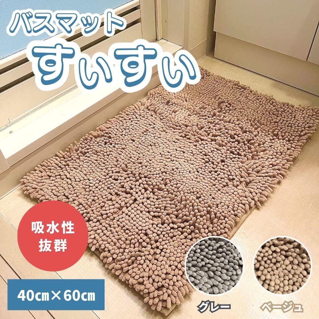 【バスマットすいすい】バスマット 速乾 大判 吸水 マイクロファイバー 洗える 滑り止め 抗菌加工 おしゃれ トイレ 洗面所用 40×60cm グレー