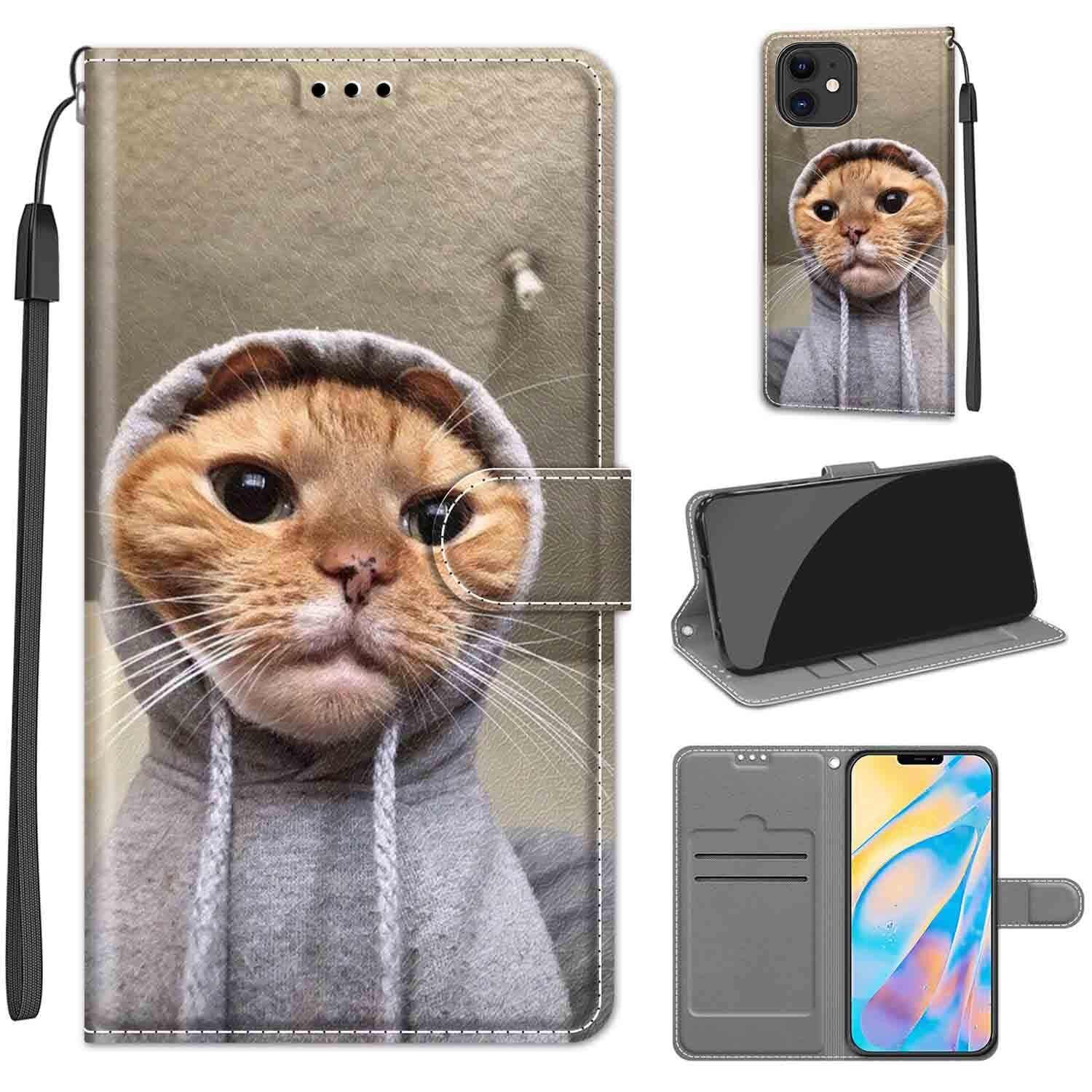 KENHONER iPhone 12 / 12Proケース手帳型 スマホケース 携帯カバー レザー 耐衝撃 耐摩擦 全面保護 マグネット式 カード収納 スタンド機能 手触りが良い 人気 上質 6.1インチ対応 黄色い猫
