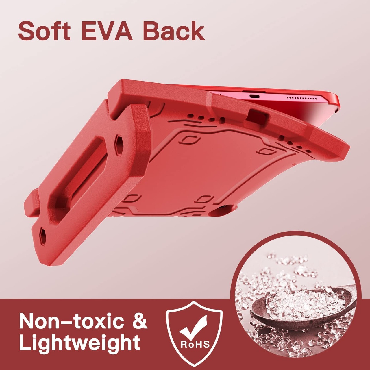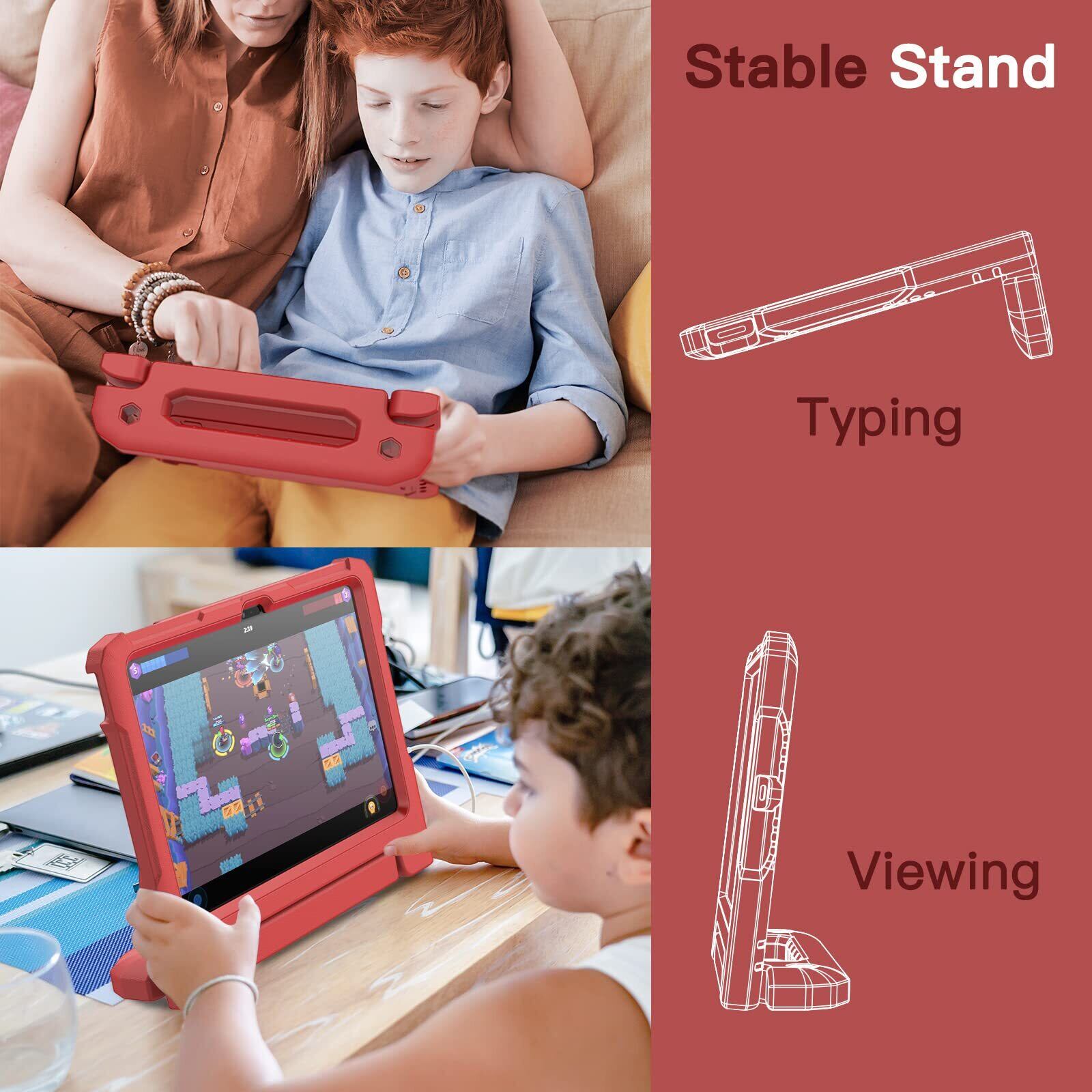 [多目的スタンド] 滑り止めの風合いで子供に優しいハンドルのデザインです。持ち�びやすいし、両手を解放して自由に視聴を体験するあるいは快適なタイピングのために折りたたんで、頑丈なスタンドに変えるのも易しいことです