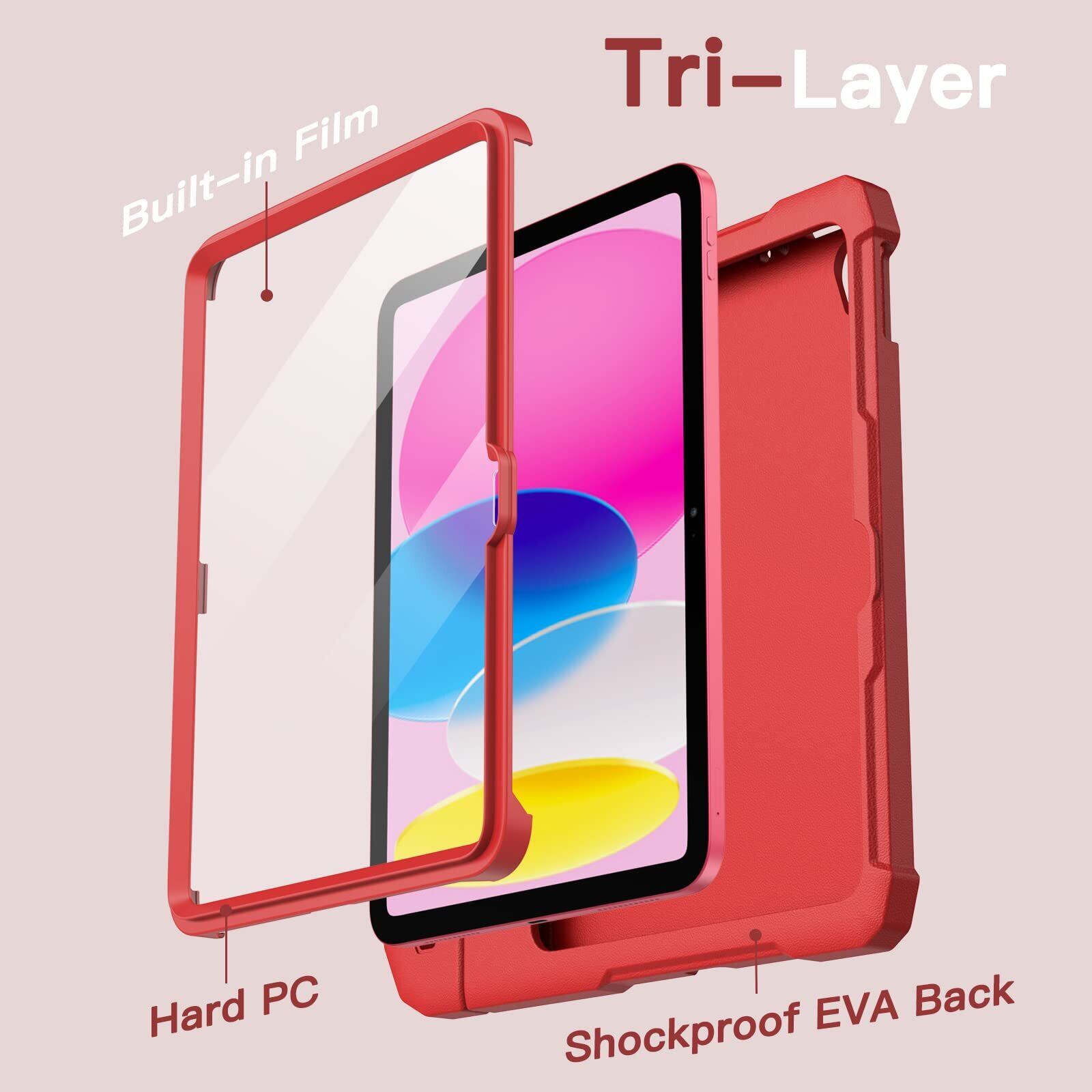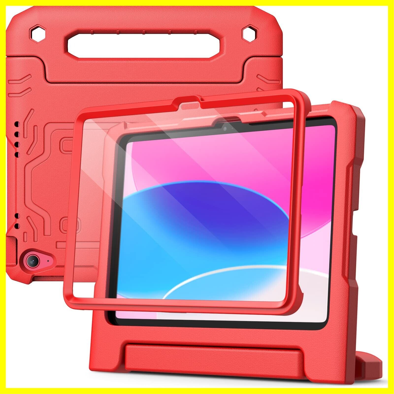 JETech 子供用 iPad(A16)ケース 第11/10世代(2025/2022モデル)用液晶保護フィルム付き 耐衝撃 フルボディハンドルスタンド タブレット保護カバー (レッド)