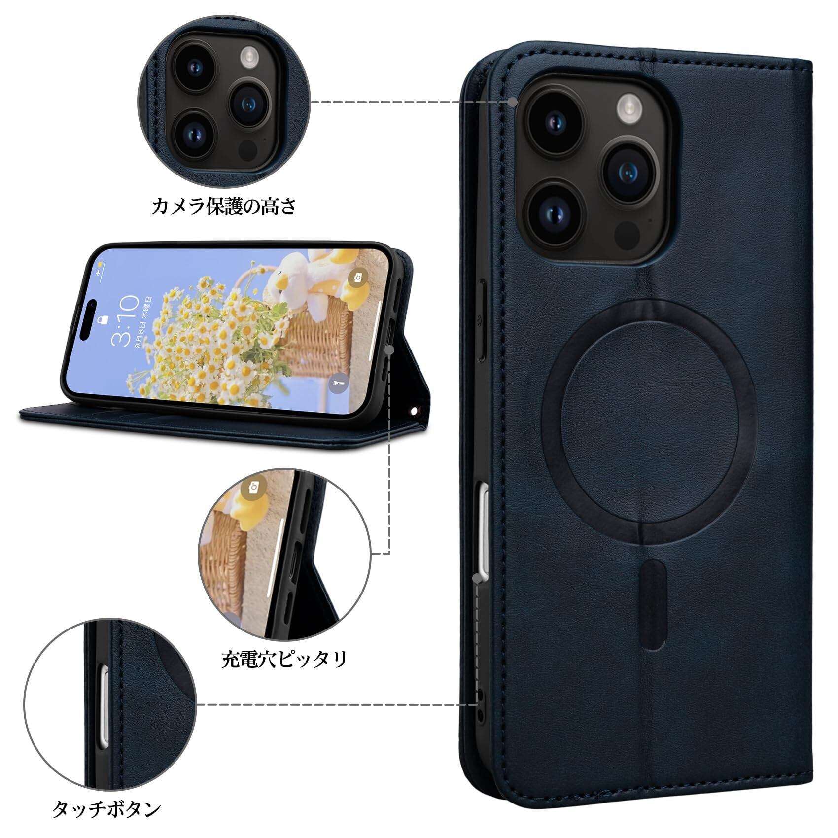 Rssviss iPhone 16 Pro Max 用 ケース 手帳型 MagSafe対応 iPhone16 pro max 用 カバー 手帳型 マグセーフ対応 カード収納 iPhone 16pro max 専用 手帳型 ケース ワイヤレス充電対応 スタンド機能 いphone16 pro max 用 ケース 手帳型 magsafe対応 マグネット付き 6.9 inch W1M ブルー
