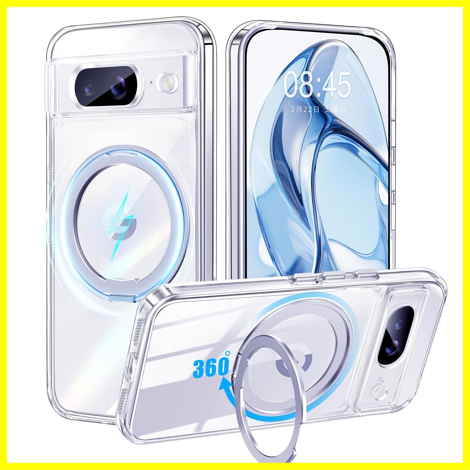 【米軍MIL規格・Magsafe対応】Google Pixel 8 用 ケース MagSafe対応 リング360°回転スタンド機能 縦横両対応 透明 黄ばみ防止 ワイヤレス充電 ピクセル8 スマホケース レンズ保護 耐衝撃 携帯カバー グーグルピクセル8 カバー 6.2 インチ マグネット搭載 車載ホルダー マグセーフ対応 おしゃれ (クリア)