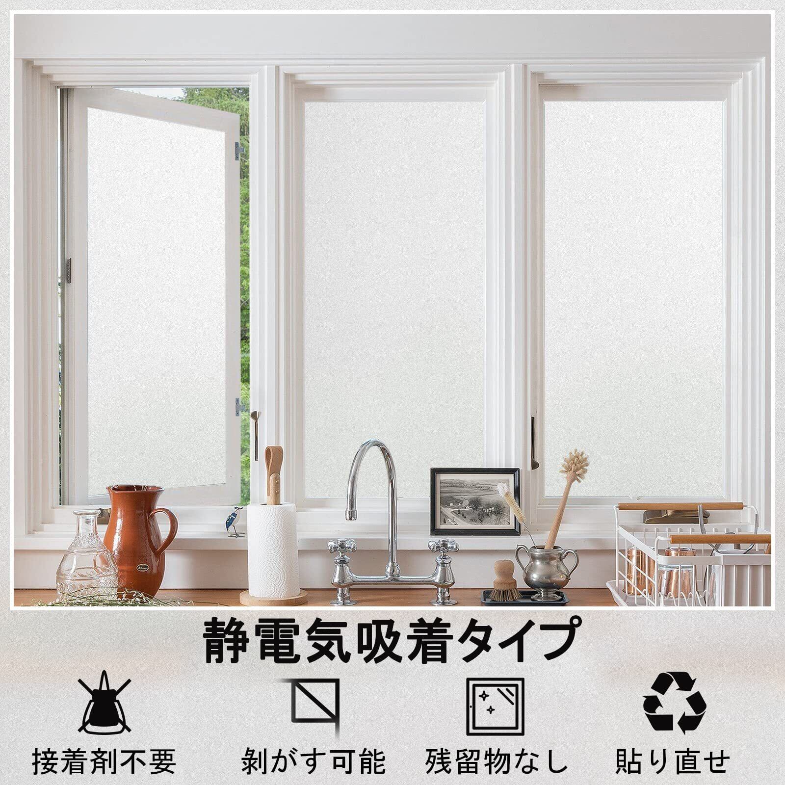 Rabbitgoo 窓ガラス目隠しフィルム 目隠しシート 窓 めかくしシート すりガラスシート 水で貼れる 貼ってはがせる 外から見えない窓用フィルム UVカット 防虫忌避 飛散防止 (乳白スリガラス 90 x 200cm)