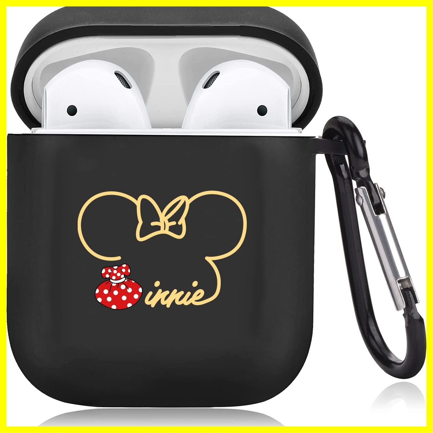for AirPods 用 第2世代 第1世代 用ケース おしゃれ かわいい キャラクター ミニー パターン 人気 オシャレ 御洒落 AirPods 1/2 対応 カップル エアーポッズ 第二世代/第一世代 TPU つや消し 落下防止 キズ防止 耐衝撃 全面保護 エアポッツ カバー カラビナ付き 紛失防止