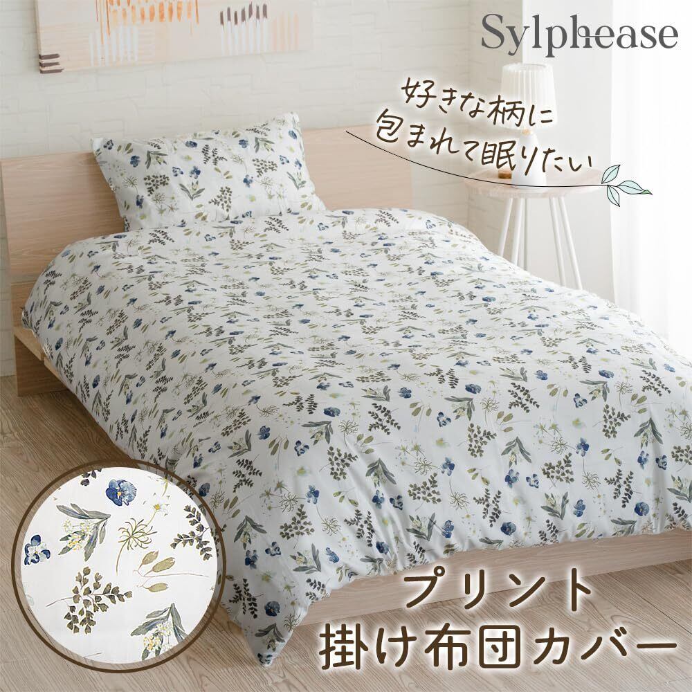 シルフィーズ 掛けふとんカバー シングル 150×210cm かけ布団カバー ピーチスキン 寝具 ずれ防止 柄 掛布団カバー 掛けカバー オールシーズン 軽い 洗える リーフ柄 グリーン