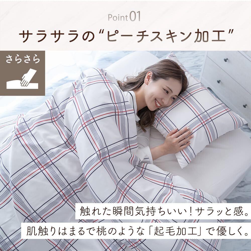 お肌に優しいやわらかいピーチスキンを使った掛布団カバー。ふんわりなめらかなタッチ感。
