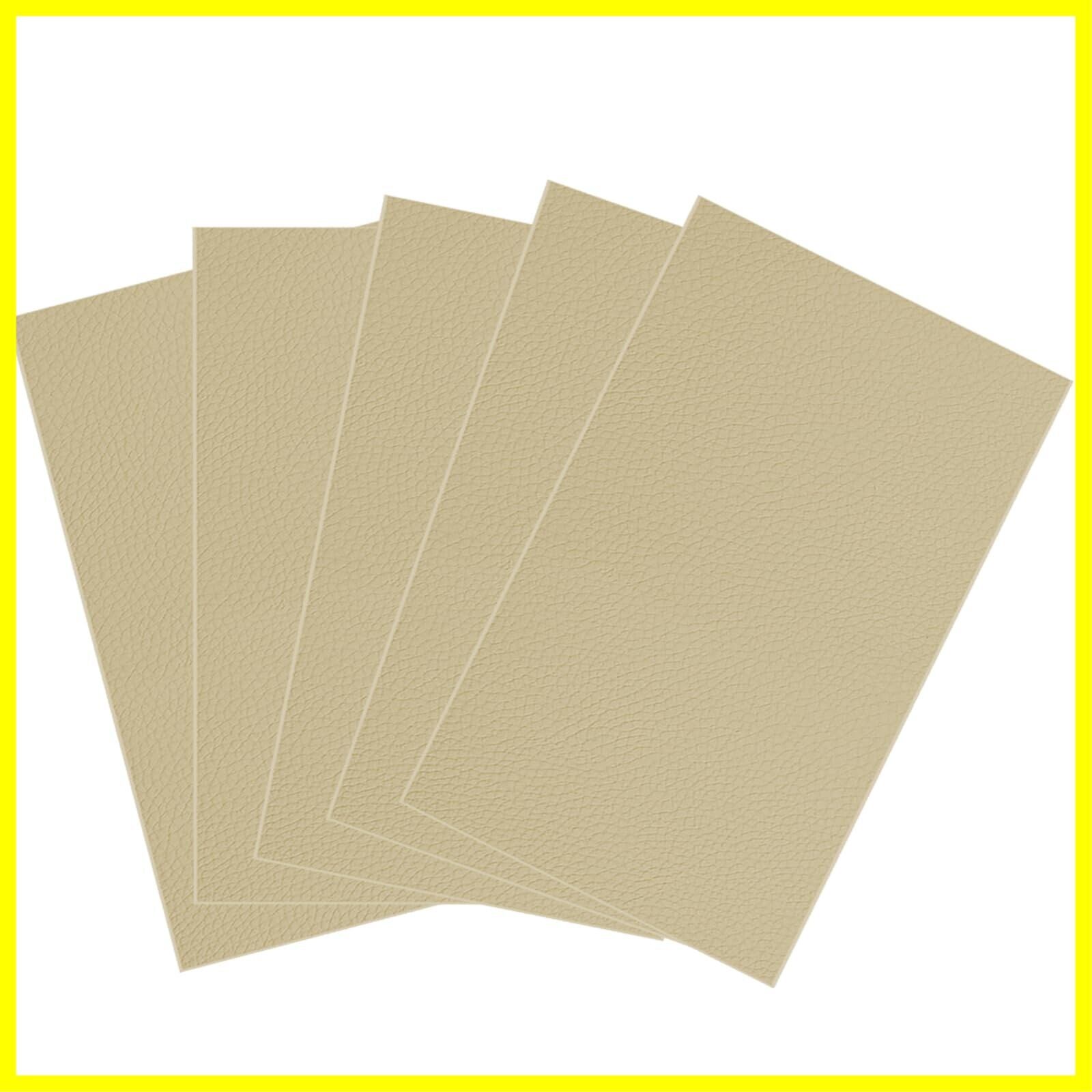 合皮 レザー補修シート 20cm×10cm シールタイプ 貼るレザー カバン 椅子/バイク/ソファー/財布/バッグなど修理用 5枚セット (20cm×10cm, ベージュ)