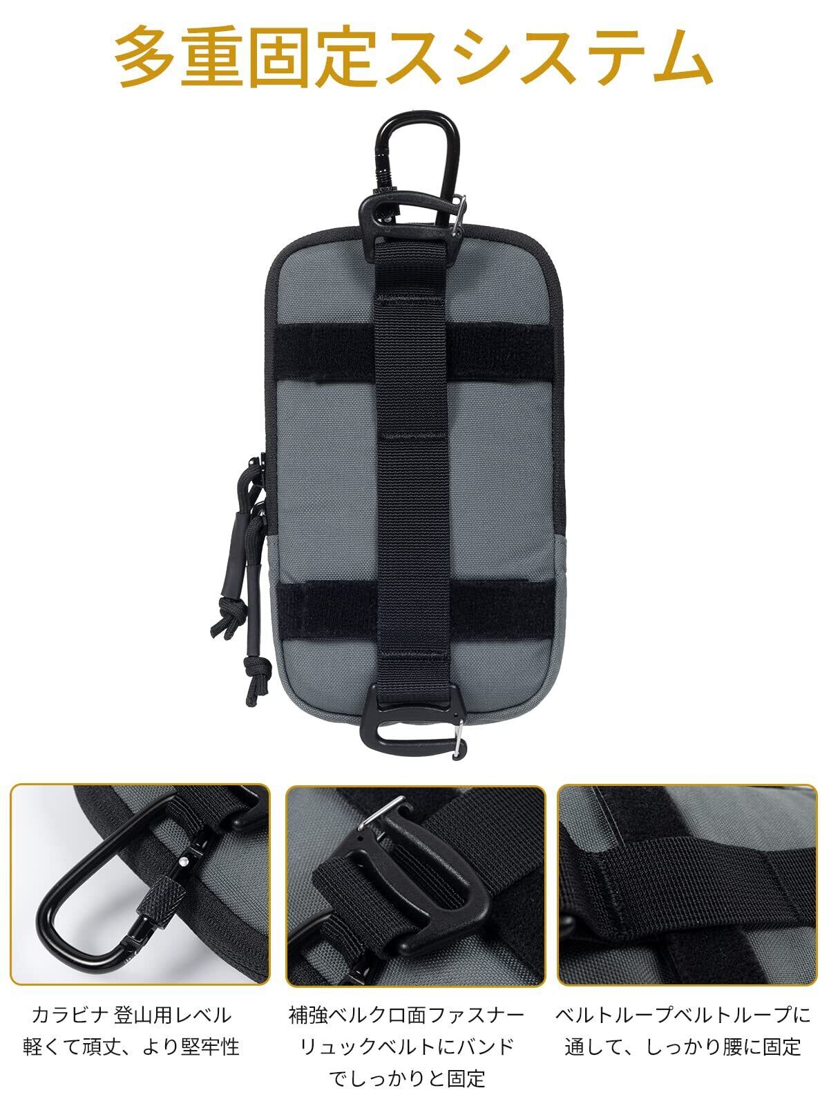 OneTigris スマホポーチ メンズ ベルト リュック 取り付け 携帯ポーチ YKK ファスナー カラビナ moll 付き アウトドア 登山 作業用 iphone 15 14 13 12 plus pro max Sony Galaxy Samsung スマートフォン 対応 グレー