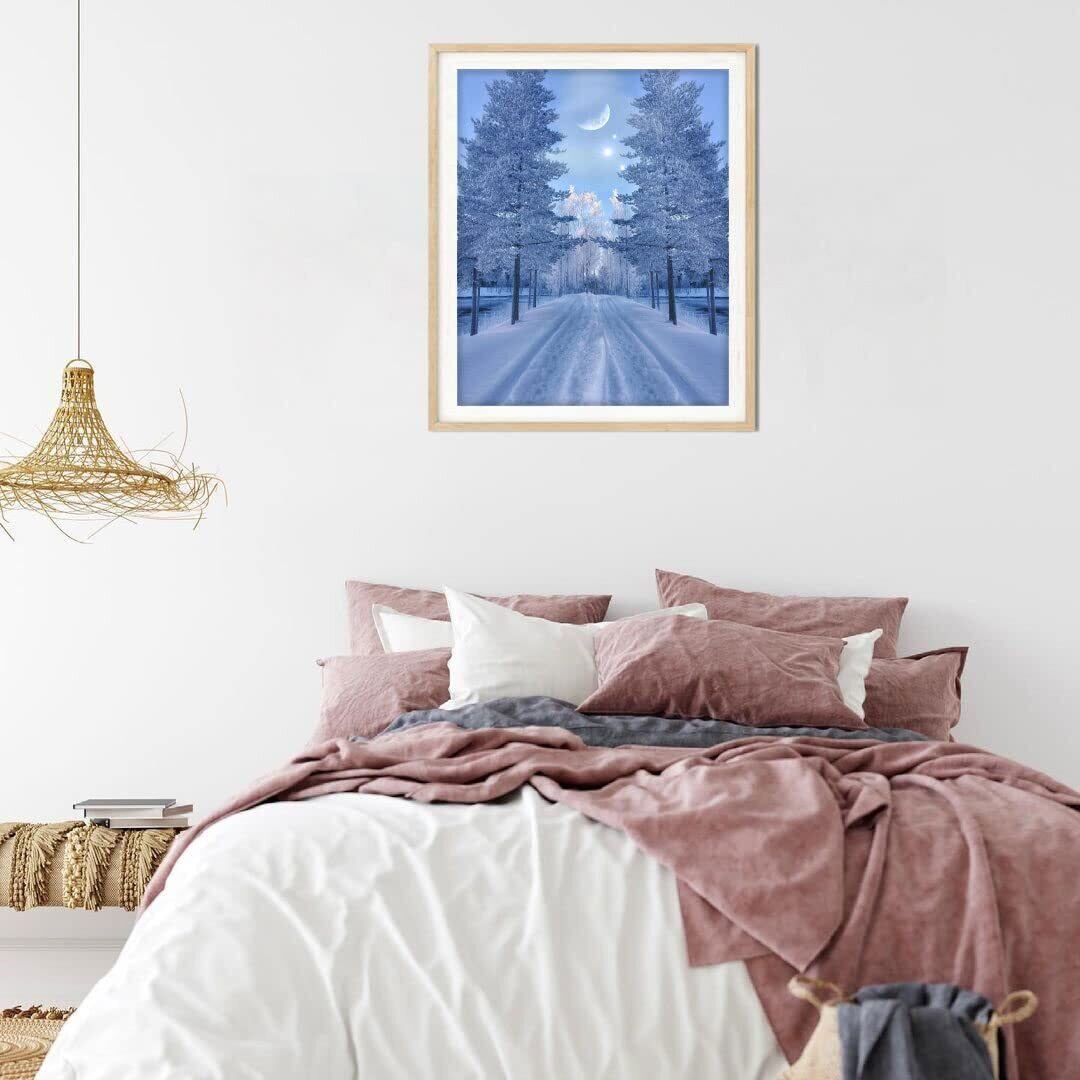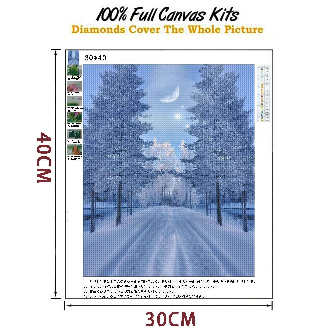 [ダイヤモンドアート 風景 冬 ダイヤモンド塗装キット 5d ラベンダー ダイヤモンドペインティング 刺しゅうキット 全面貼り付けタイプ ビーズアート 手作り絵画 手芸キット クロスステッチキット ハンドメイド DIY 家の壁の装飾 40x30cm 真っ白の道]