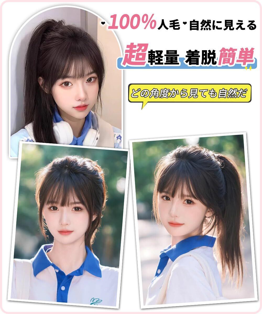 【美しいシースルーバングで小顔効果抜群!】パッツンスタイルのシースルーバングデザインは、顔周りを自然に引き締め、理想の小顔効果を演出します。誰にもバレずに、手軽にイメージチェンジが可能です。