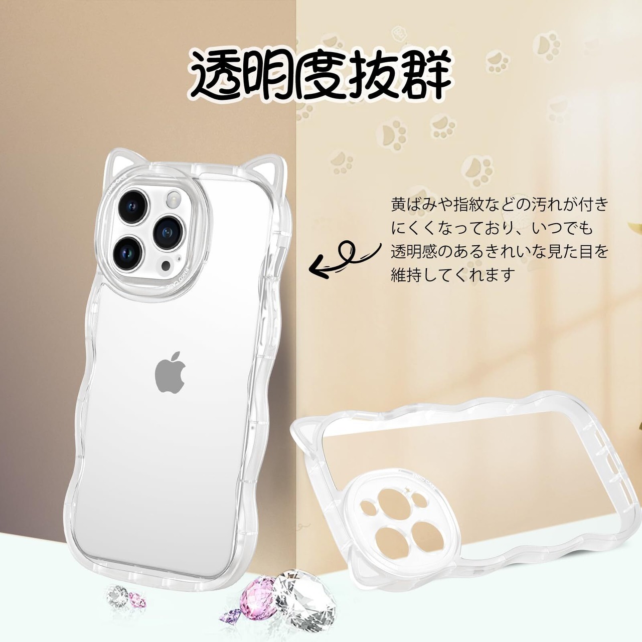 [BENTOBEN iPhone 15 pro max ケース クリア 猫耳 うねうね かわいい 波型 ソフト 超軽量 薄型 耐衝撃 指紋防止 透明 おしゃれ ウェーブ カバー]
