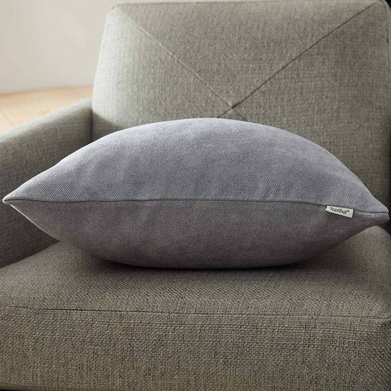 Topfinel クッションカバー リネンっぽい 60×60cm 北欧 おしゃれ 綿麻 無地 ソファ背当て 装飾枕カバー 座布団カバー グレー 1枚(全10色)