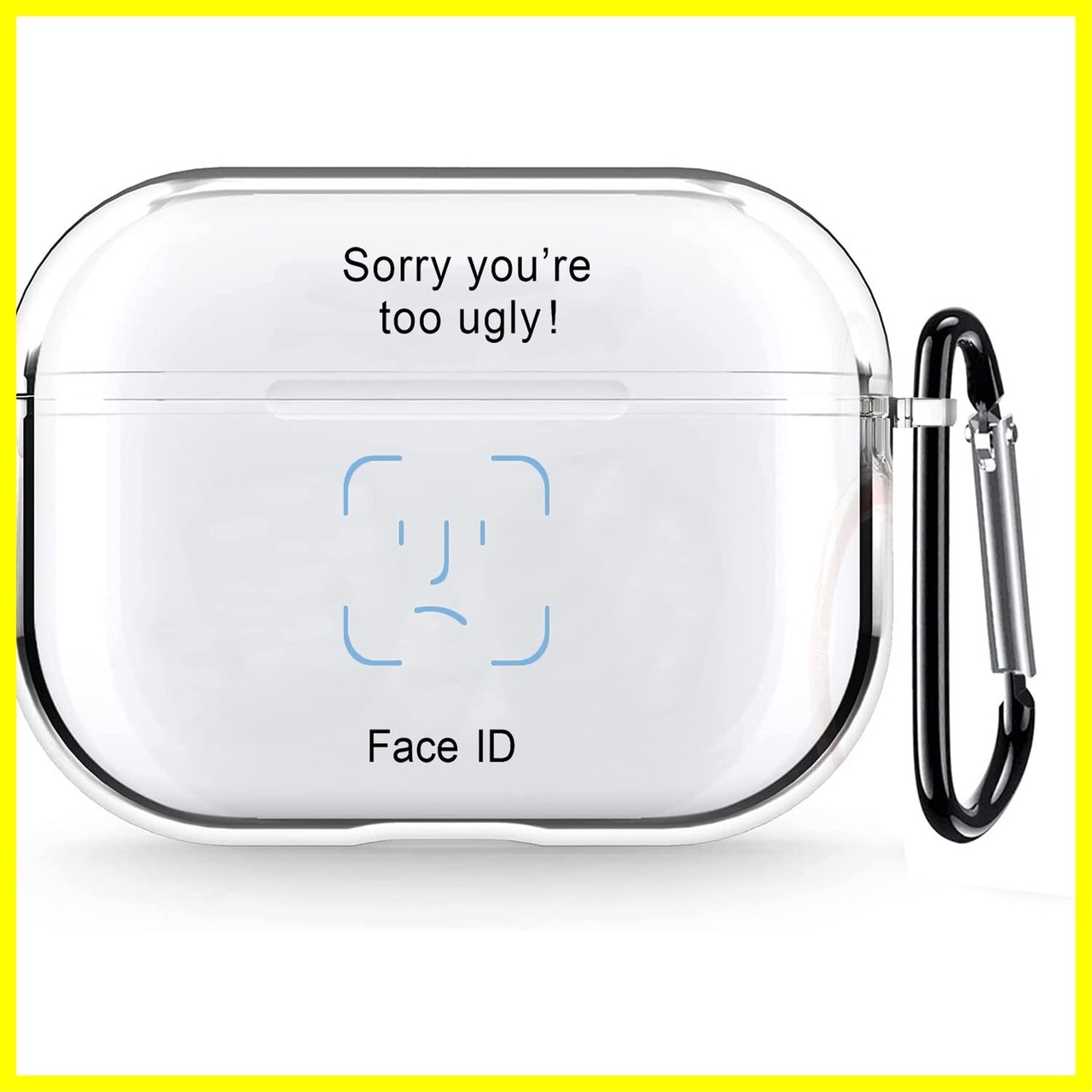 [AirPods Pro ケース 2019年10月発売用 クリア おしゃれ おもしろい かわいい 創意 Face ID デザイン シンプル エアーポッズ ケース オシャレ 分離式 透明 TPU 充電ケース カラビナ付き 耐衝撃 ワイヤレス充電対応 AirPods Pro 用 ケース]