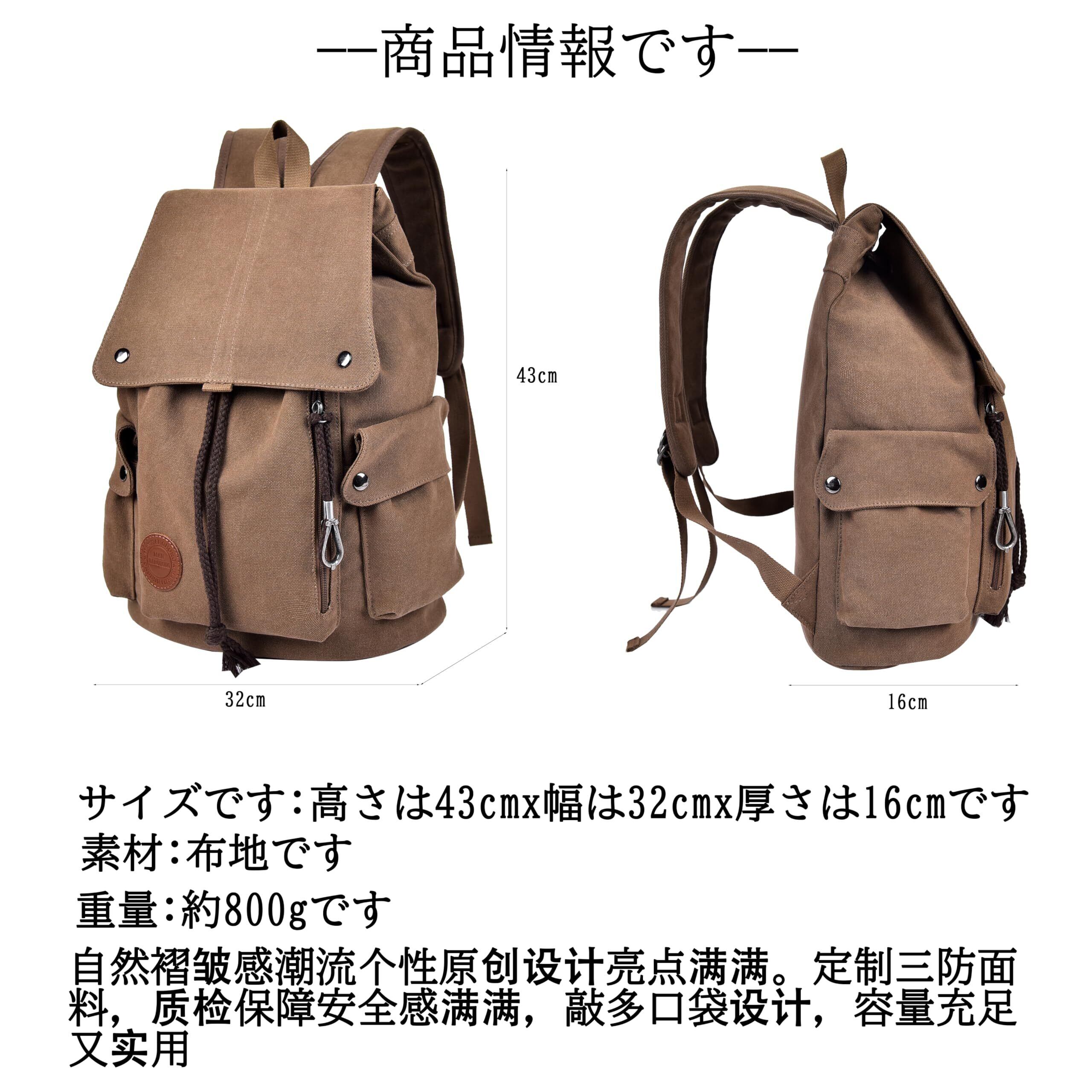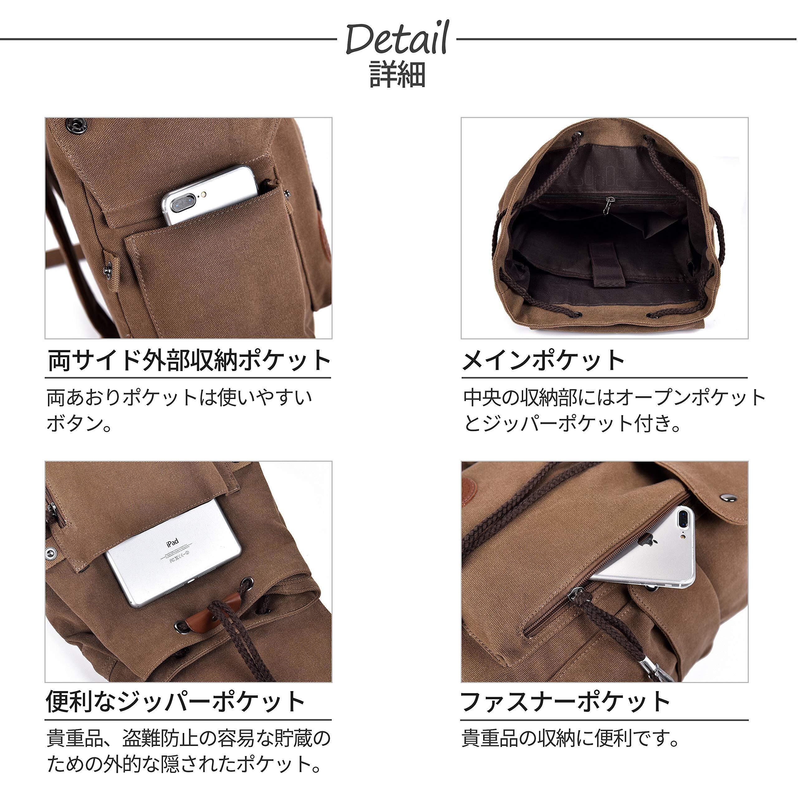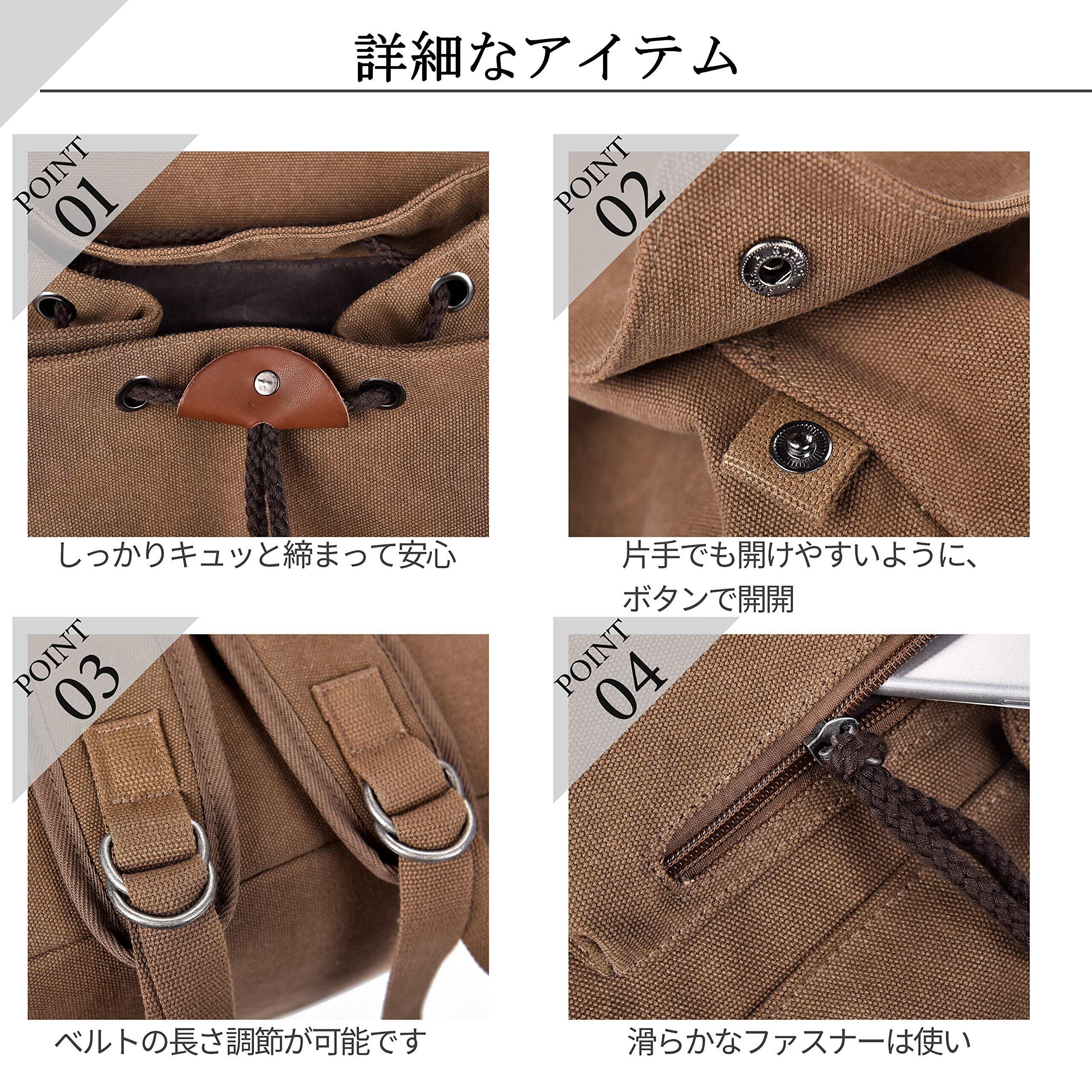 【素材】キャンバス材料は耐摩耗性、耐引裂性、耐久性、快適性、通気性に優れています、長持ちになります。使うほどに味の出る高品質の帆布素材。上品で味のあるアンティーク調の仕上がり。カジュアルなスタイルはもちろん、お出かけ、通勤、通学など様々なスタイルにマッチする リュック です。