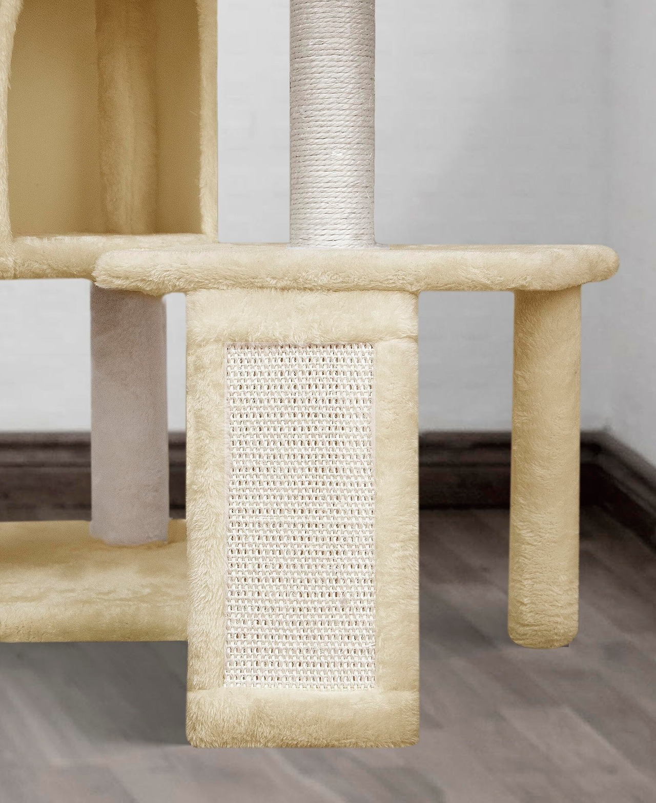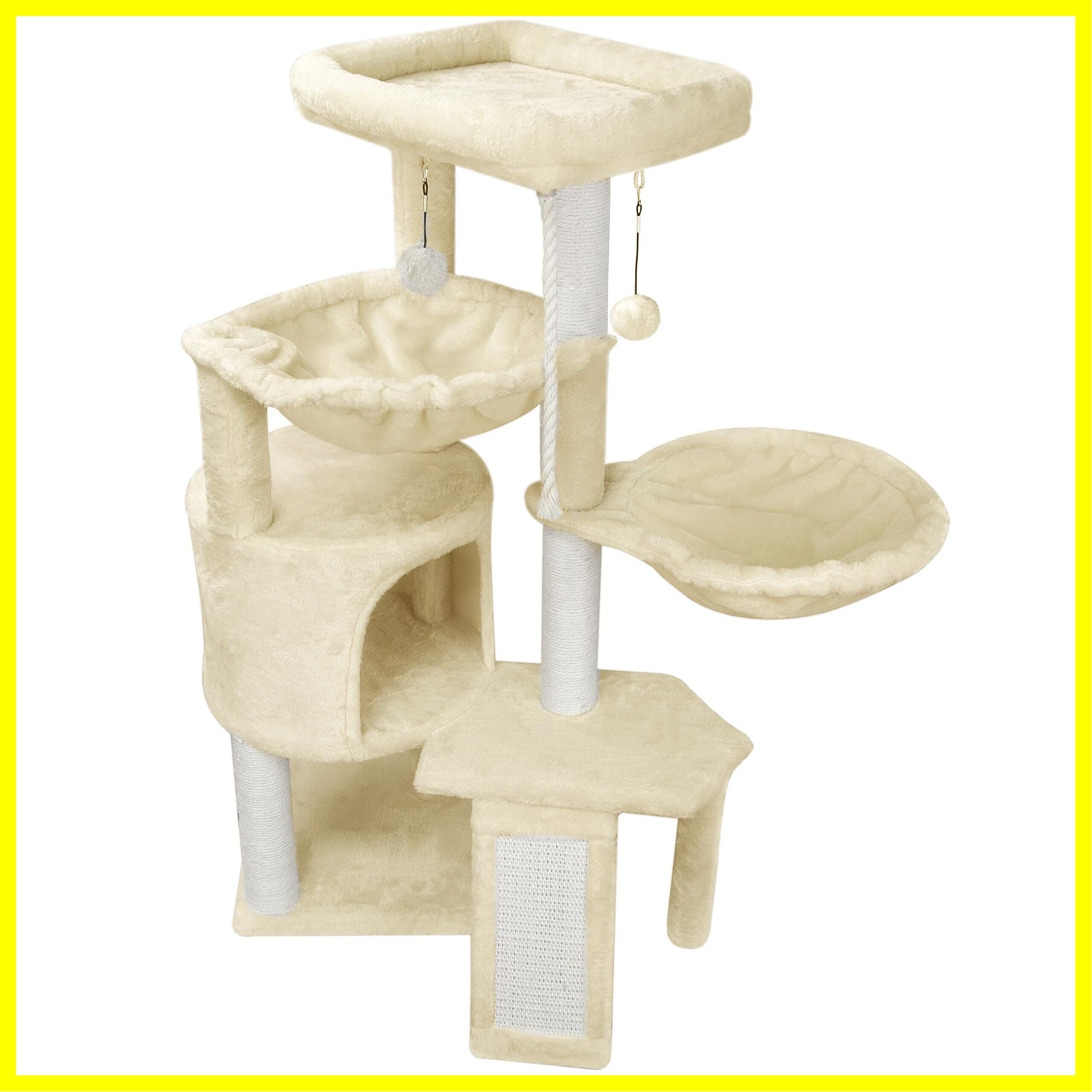 TWDEPART キャットタワー 猫タワー 麻紐 安定 猫ハウス 爪とぎ 省スペース 据え置き 隠れ家 ハンモック おもちゃつき 95CM高さ (ベージュ)