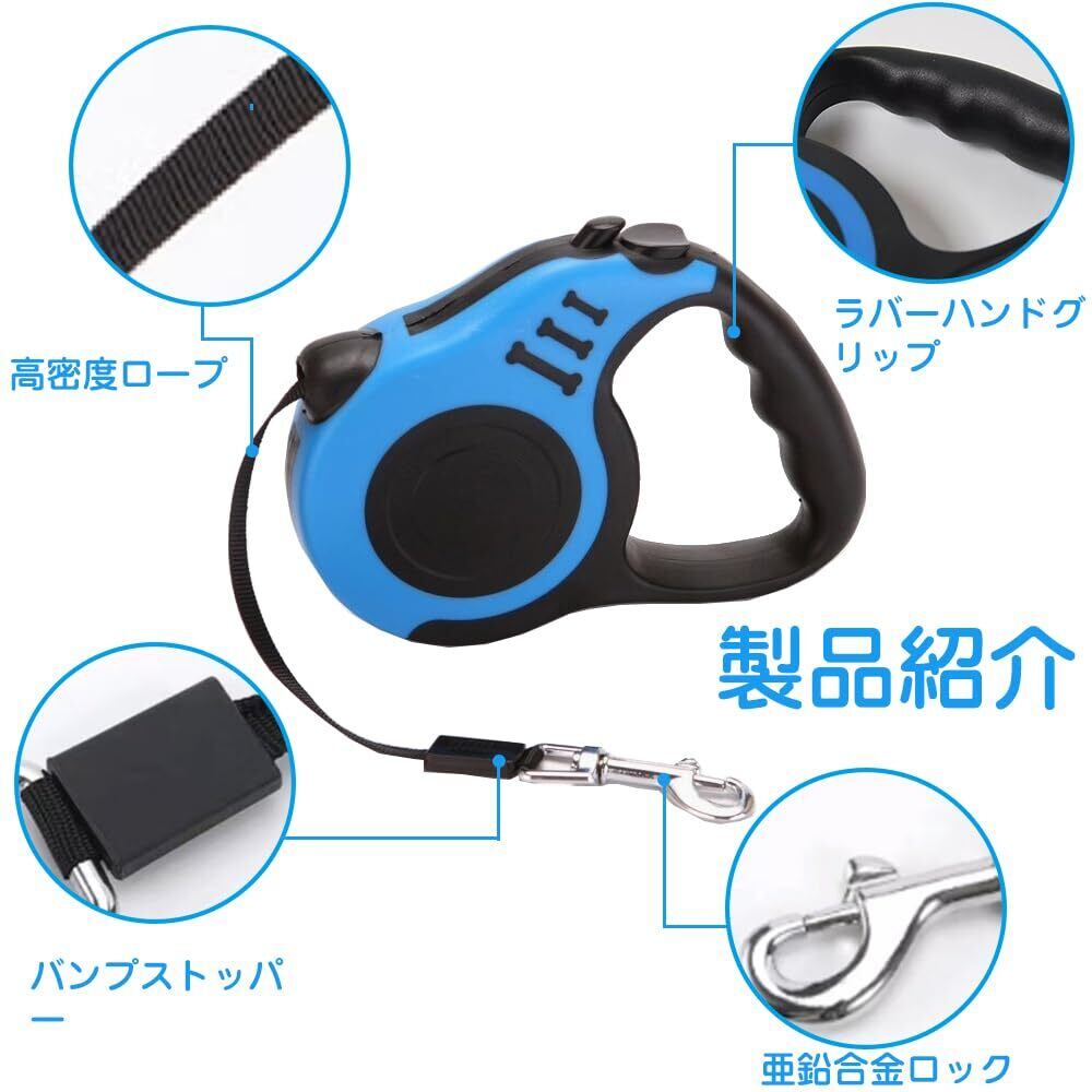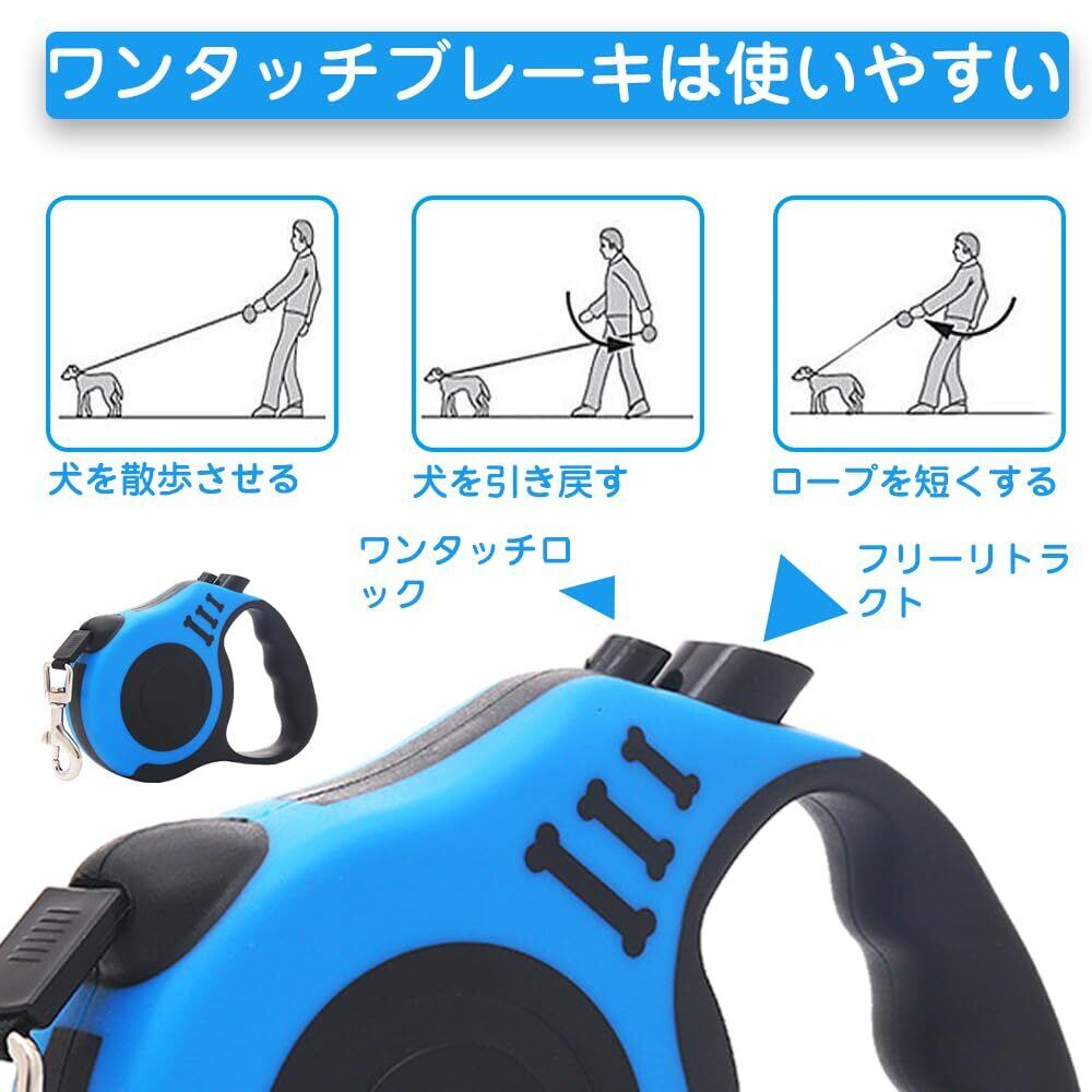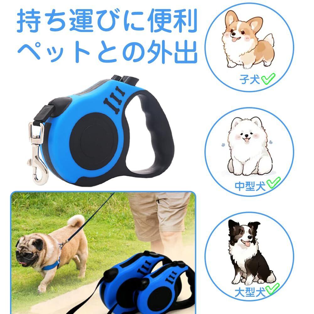 犬用リード 省エネリトラクタブルリード 引き込み式リード 簡単操作 快適な手触り 小型犬用 中型犬用 大型犬用 アウトドア 散歩 暴れ防止 (3M ブルー)