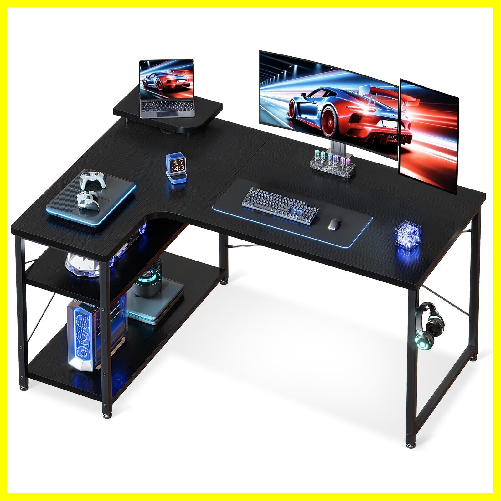 【ゲームと仕事両立】L字ゲーミングデスクは実用性が高く、ゲームプレイ、在宅勤務、書斎机、勉強机など様々なシーンで大活躍!モニター台を利用して目線をあげることで、作業時の姿勢を改善し、テレワークが快適になり、作業効率も格段に上がります。