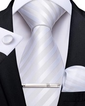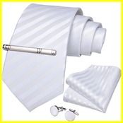 セット内容:ネクタイ(長さ150cm*大剣先幅8cm)、ポケットチーフ(23*23cm)、タイピン、カフスボタン、4点セットです。ストライプ、無地、フローラル、チェック柄などのパターンネクタイをご用意しており、スーツやシャツにピッタリマッチします。