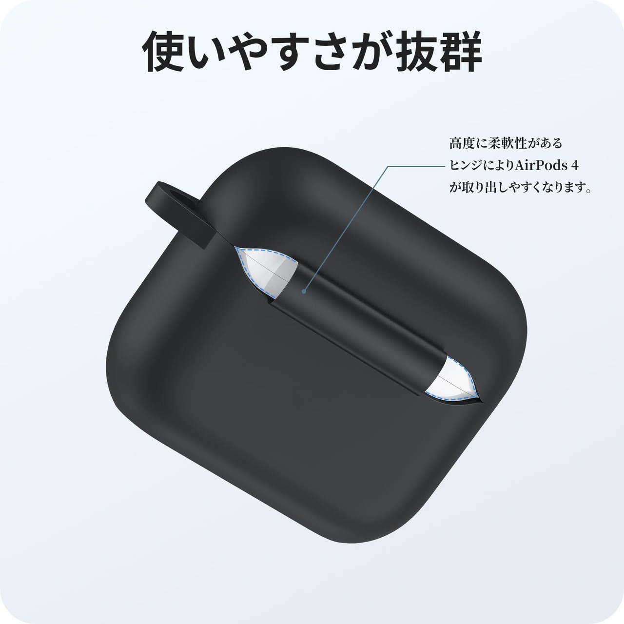 【使いやすさが抜群】AirPods 第4世代専用に設計され、充電ケースに完全にフィットし、充電ポート用の穴があるのでケースを外すことなく直接ケーブルで充電できます。また、ケースを付けたままワイヤレス充電にも対応できます。airpodsの蓋が開けやすいように、製品の前面には指を引っ掛けて開けられるように隙間があるデザインとなっています。