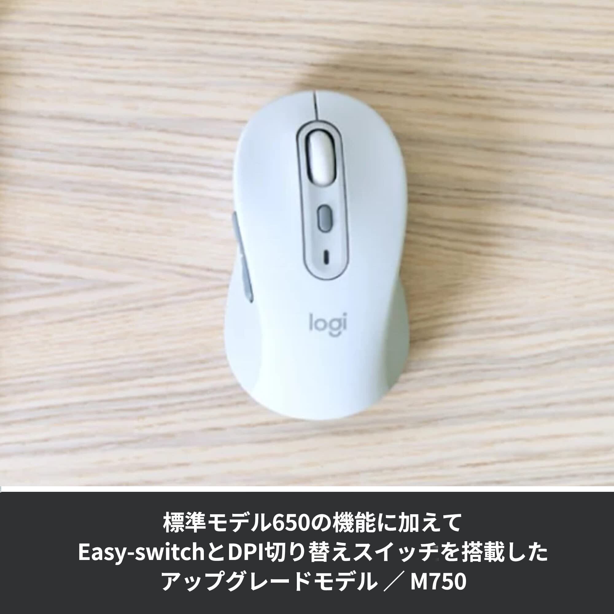 M750/標準モデルSignature M650の機能に加えて3台までの接続デバイスをボタンのみで切り替えられるEasy-switchとカーソル速度が調整可能なDPI切り替えスイッチを搭載したアップグレードモデル