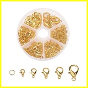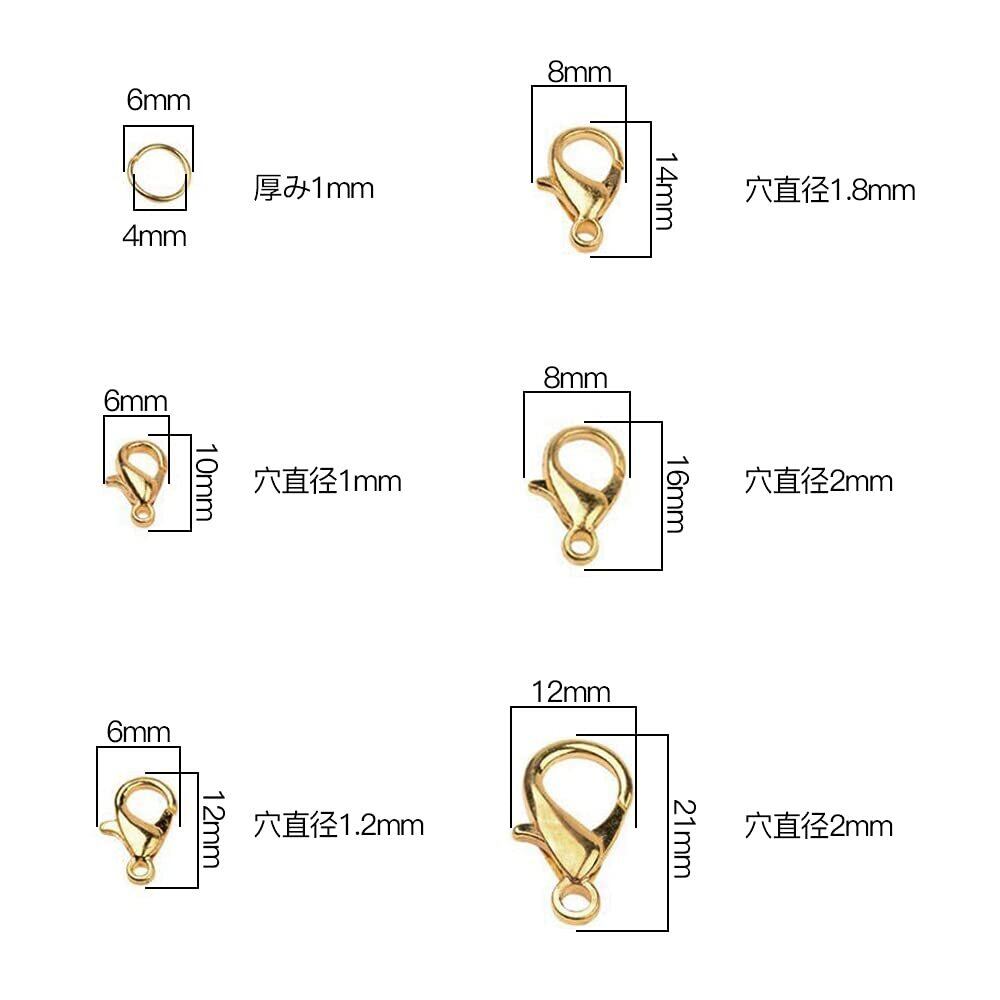 カニカン 6種セット 5サイズ 6mm 8mm 12mm 丸カン マルカン 金具セット 基礎パーツ DIY アクセサリー パーツ リング ハンドメイド 手芸 クラフト 収納ケース付き (ゴールド)