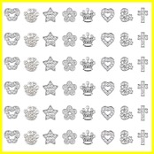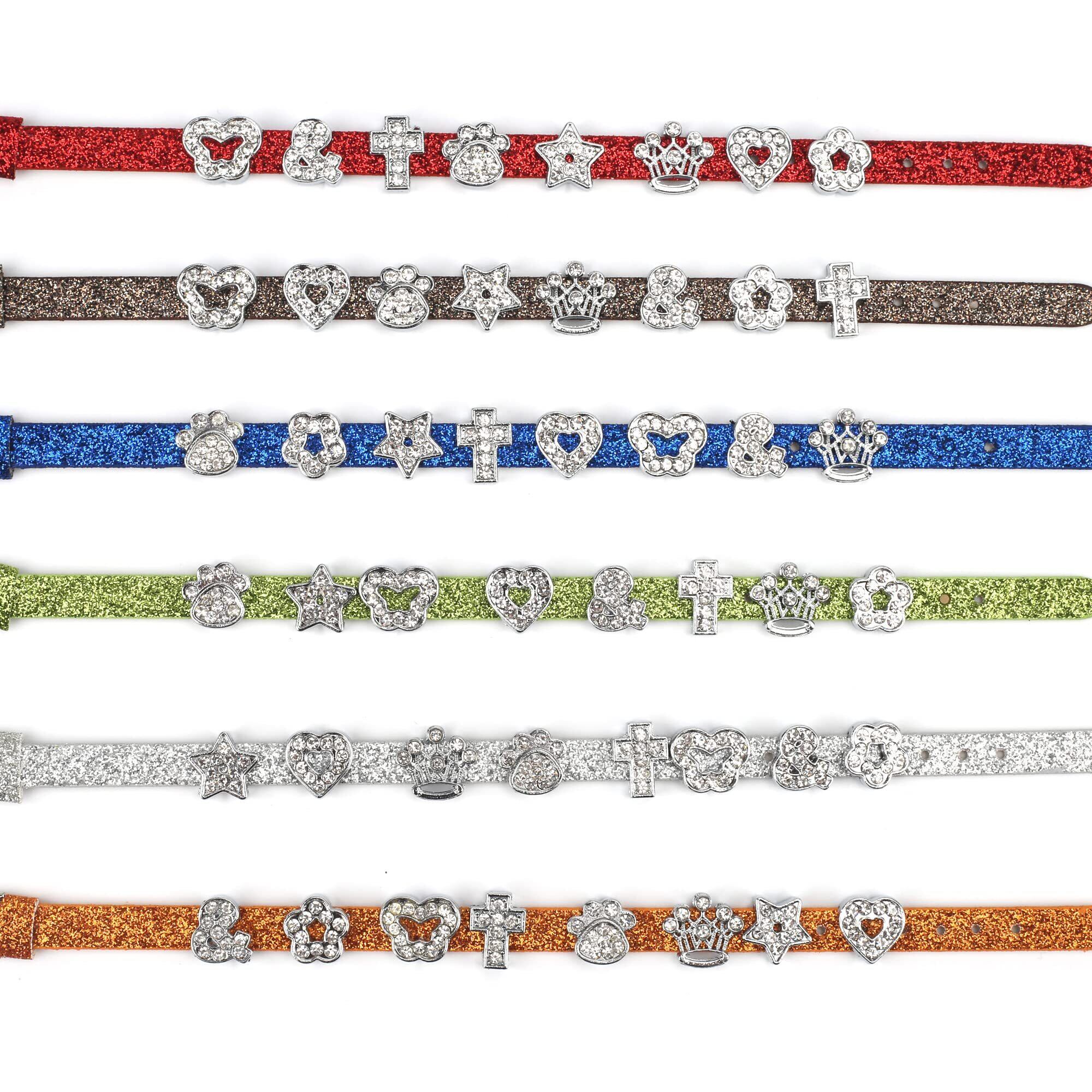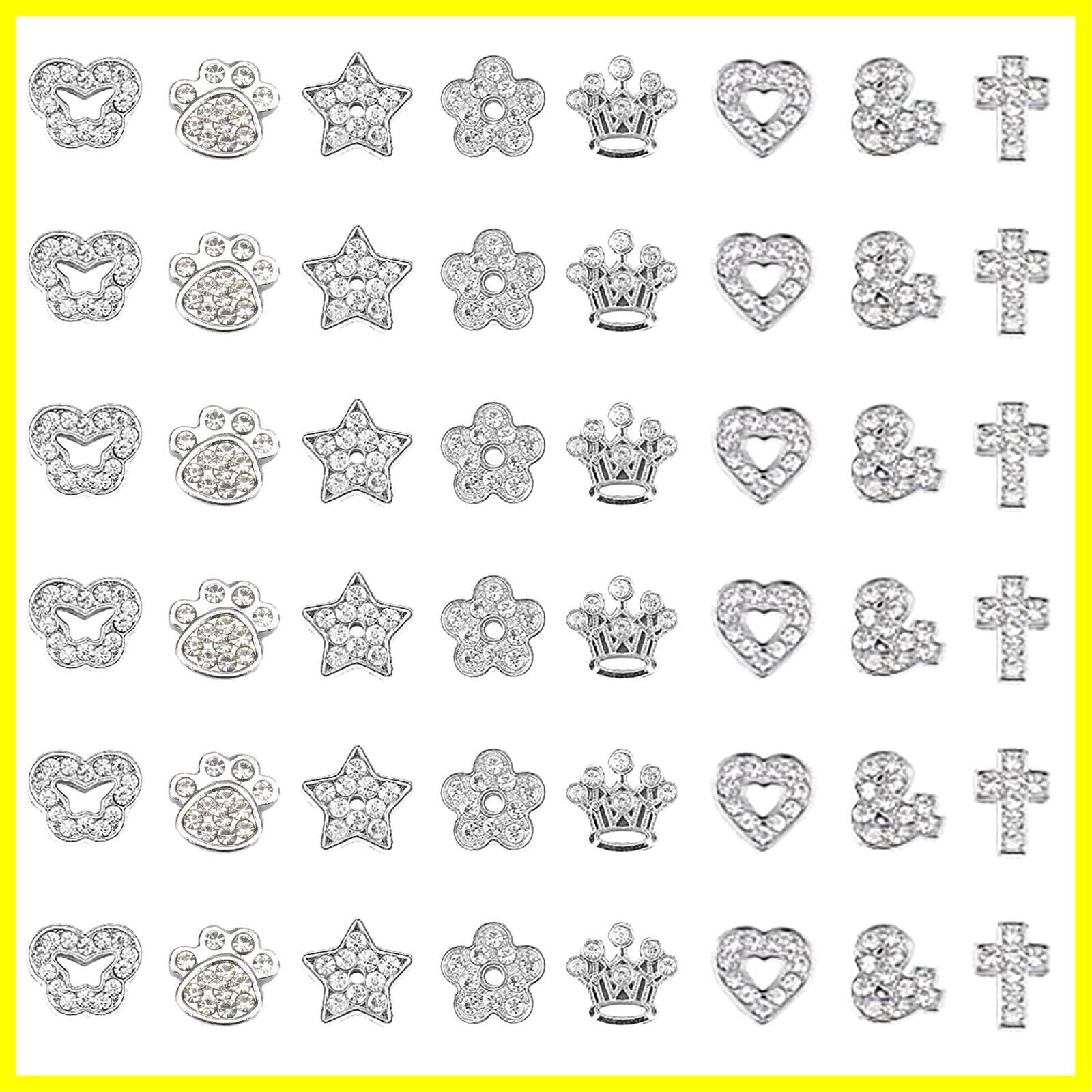 ASUNFO ラインストーンスライドチャームビーズ 48個 アソート8形 王冠 五角形 十字架 花 蝶 & 足跡 ハート 8mm, 金属, 宝石なし