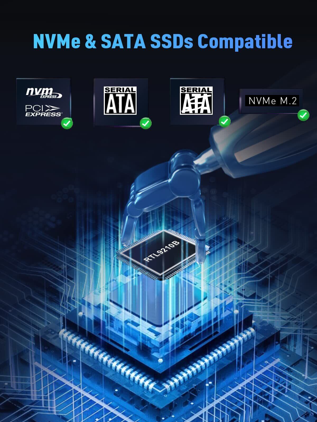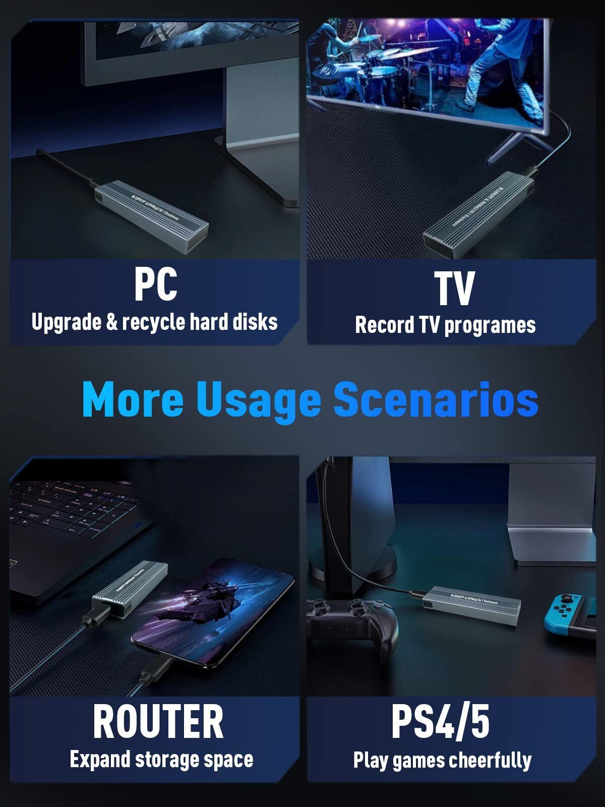 【NVME&SATA両対応 外付けケース】VCOM SSD エンクロージャーは高性能チップを搭載され、M.2 SATA/NGFFとM.2 NVMe/PCIeの両方をサポートし、M-Key NVMe/PCIe、B+M Key NVMe/PCIe、B+M Key SATA/NGFFのSSDに対応します。ご注意:B-Key SATA/NGFFのSSDには非対応です。4TB容量のM.2 NVME/SATA 2230/2242/2260/2280 SSDを対応できます。