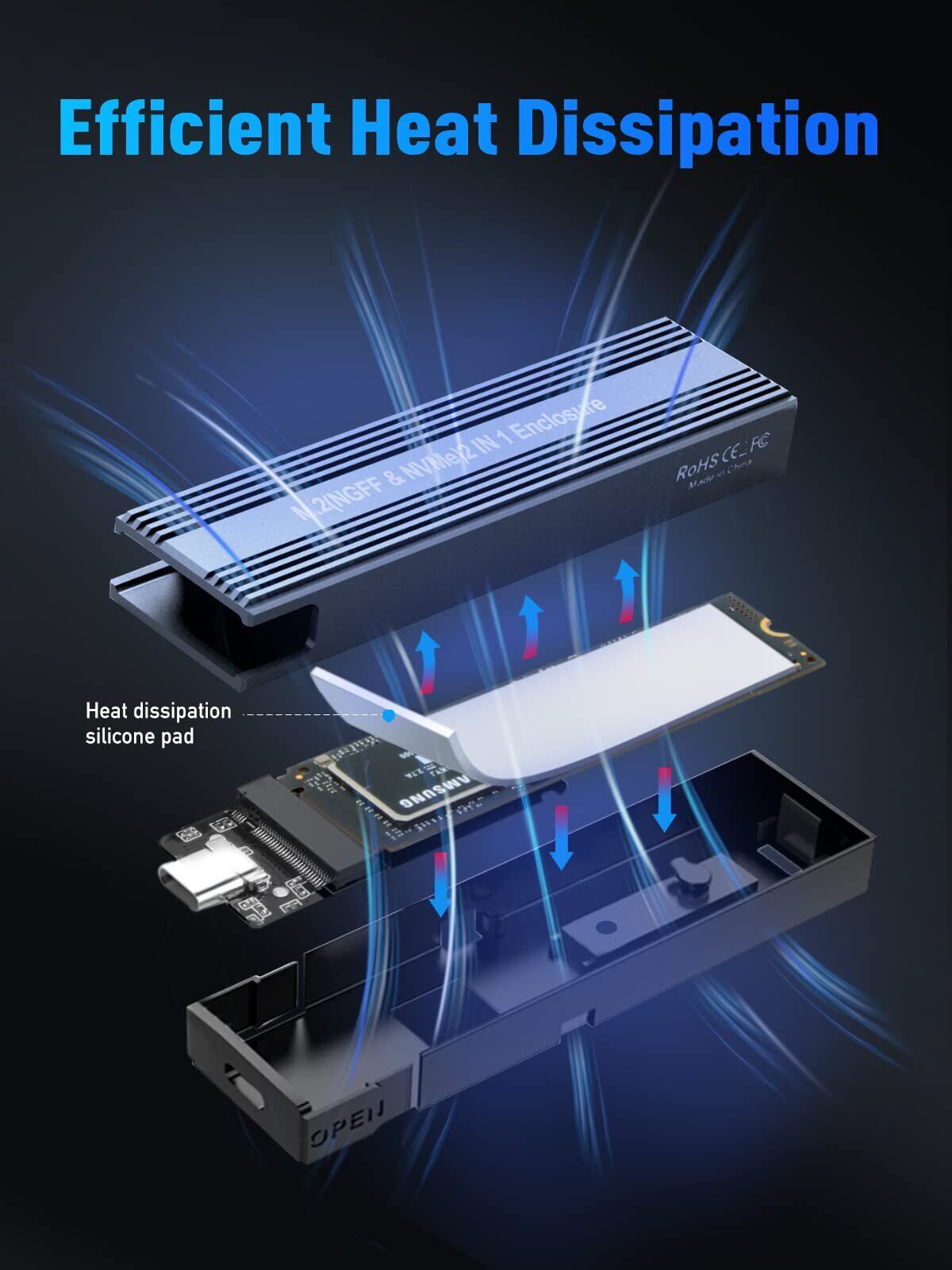 【10Gbpsの高速データ転送】最新のUSB Cインタフェースを採用し、M.2 NVME USBの転送速度は最大10Gbpsになります。 SATAプロトコルSSDまたはUSB Aケーブルを利用する場合、転送速度の最大理論値は6Gbpsです。