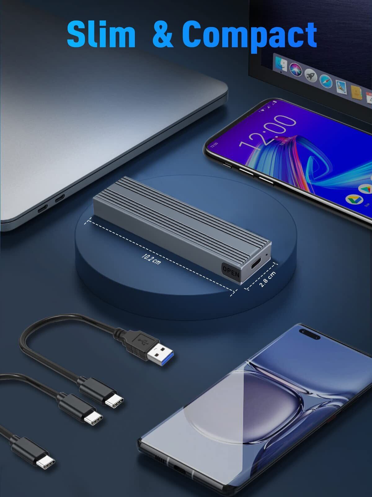 【工具不要設計】工具不要のM.2NMVeSSDケースで素早く簡単に設置できます。コンパクトなデザインで、持ち運びに便利です。1*25cm USB A-C/USB C-C 2本ケーブル付いており、PC/スマホやタブレットなどに対応でき、幅広い汎用性があります。使いやすく、追加のツールは必要ありません。新品のSSDを使用する場合、パーティションを分割する必要があります。具体的な手順については、添付の説明書を参照してください。