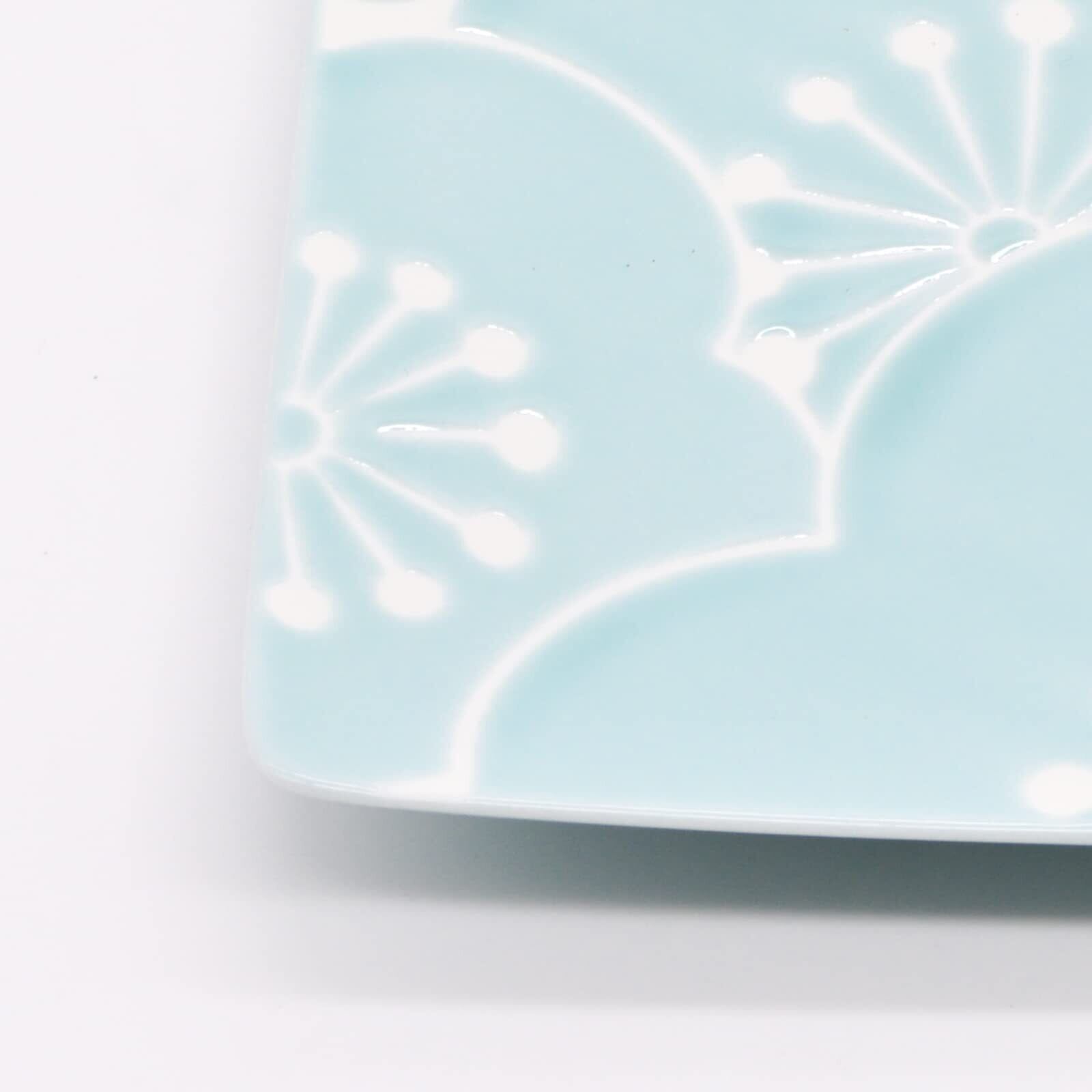 波佐見焼 「 はふり 」 長皿 長角皿 焼き物皿 径約25×13.5cm ブルー 梅 18087