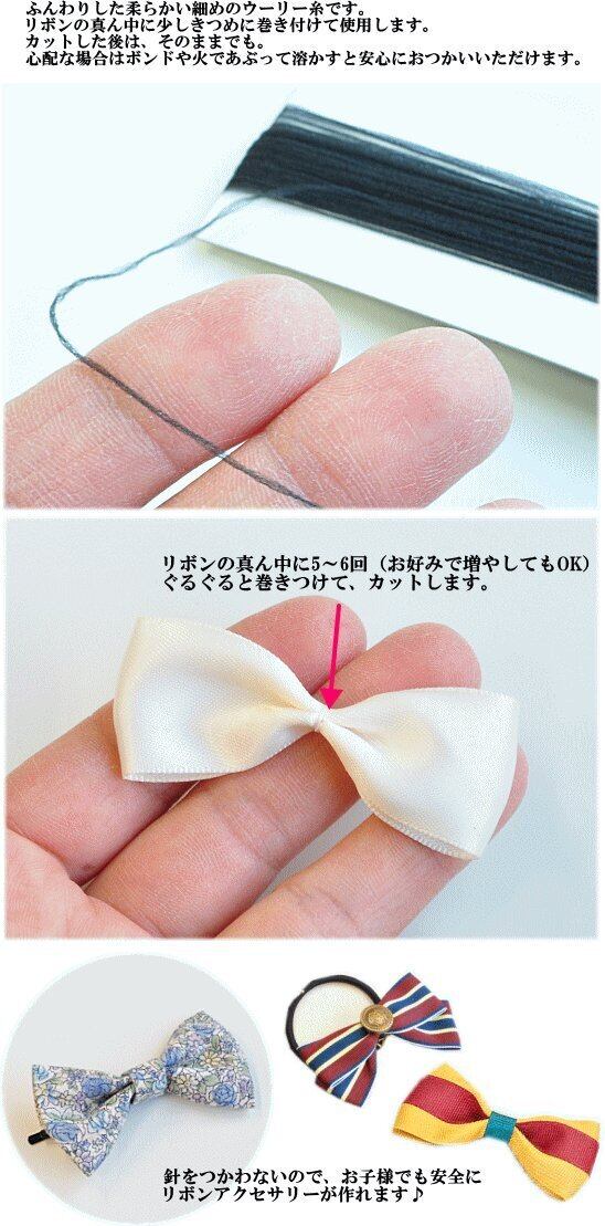 ふんわりやわらかな細めのウーリー糸はリボン製作時の仮止めに最適です。