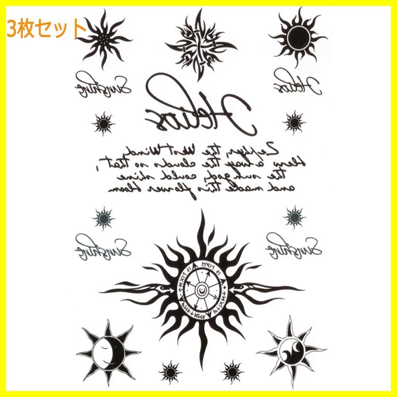 【セット内容】タトゥーシール 太陽 文字 3枚セット 大判。