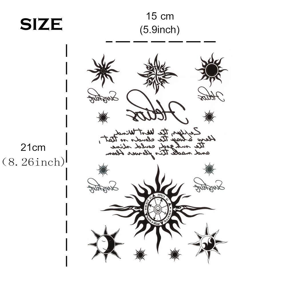 Yesallwas タトゥーシール 文字 英語 太陽 トライバル 3枚セット 英文字 リアル 大判 防水 長持ち 入れ墨シール タトゥーステッカー ボディーシール 刺青シール 防水 子供 メンズ レディース tattoo (C(大判3枚))
