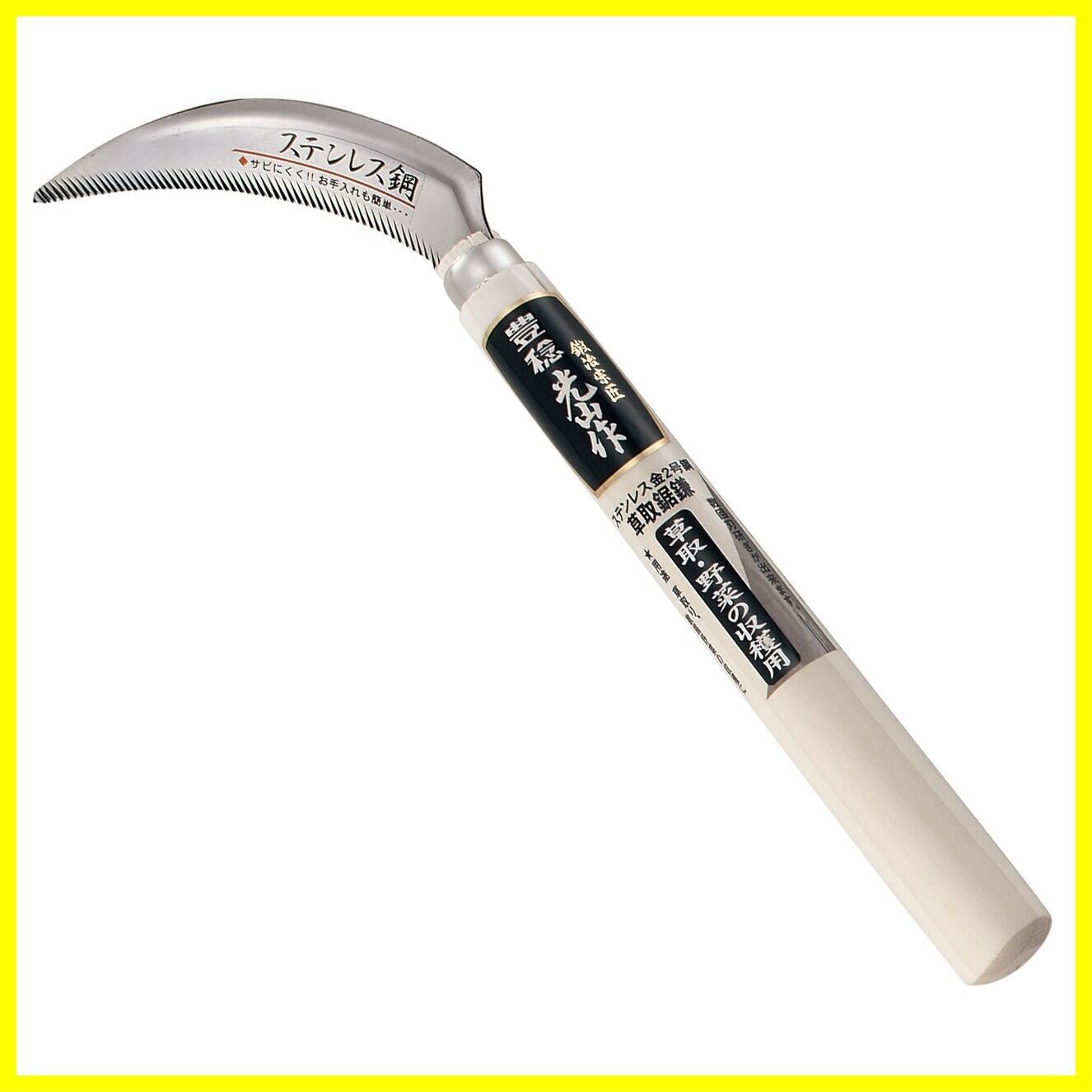●金2号ステンレス鋼使用。錆びにくくよく切れる金2号鋼を使用し、先まで目切った草取り鋸鎌。草取り用