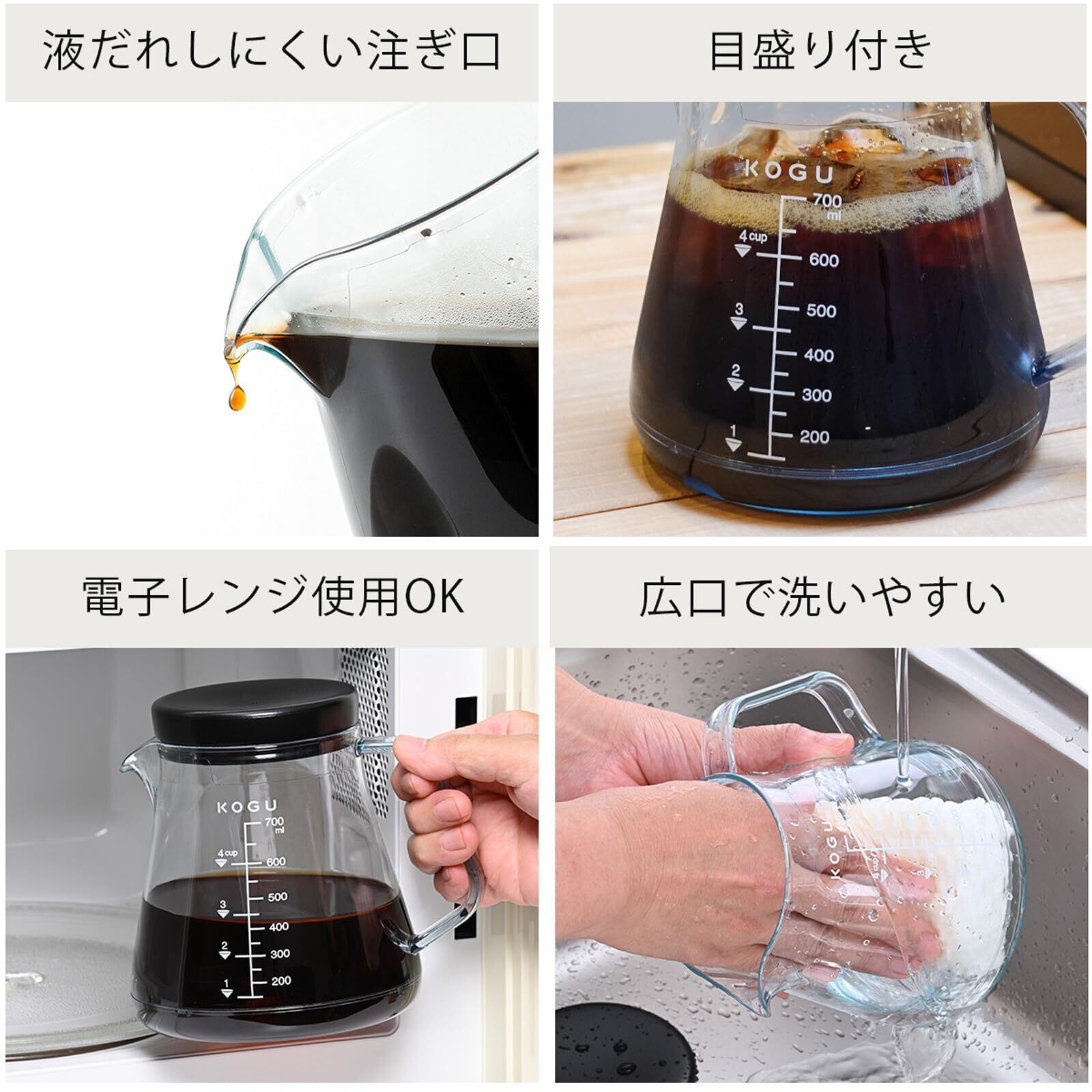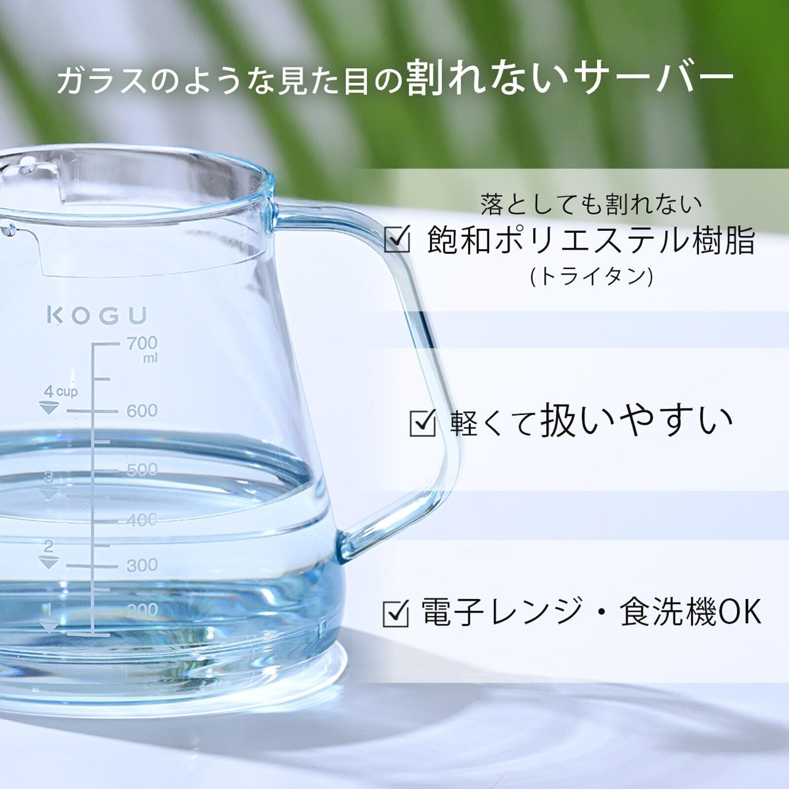 KOGU 珈琲考具 割れないコーヒーサーバー 700ml 【日本製】 食洗器対応 電子レンジ対応 軽量 目盛付き 1~4杯用 トライタン ドリップ 器具 おしゃれ アウトドア 燕三条 41289 プレゼント 誕生日 記念日 ギフト 贈り物 下村企販