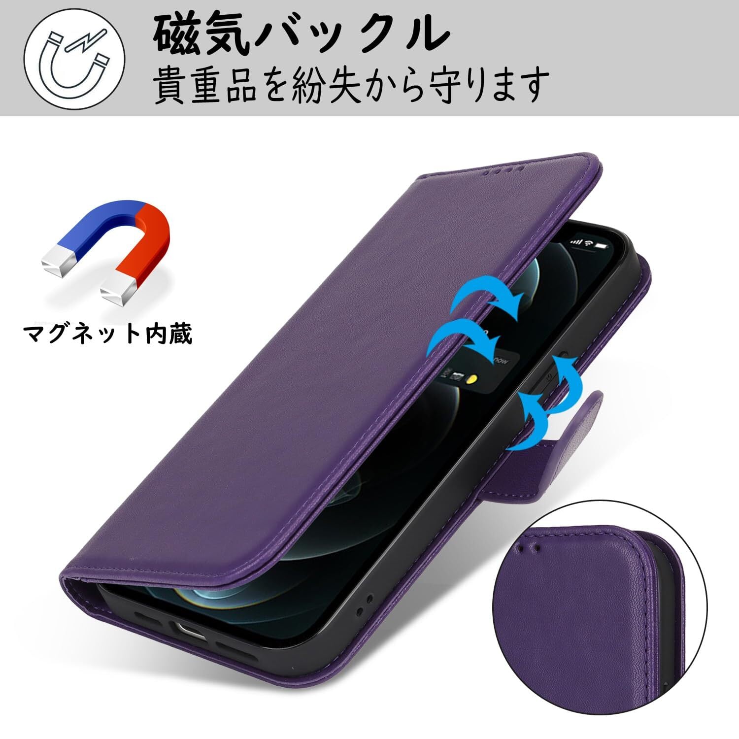 【Hamany】 いphone12 pro ケース iphone 12 ケース 手帳型 カード収納 横置スタンド機能 スマホケース iphone 12 耐衝撃 耐久性 耐摩擦 アイホン12プロケース 財布型 TPU素材 高級PU合皮 マグネット式 -パープル