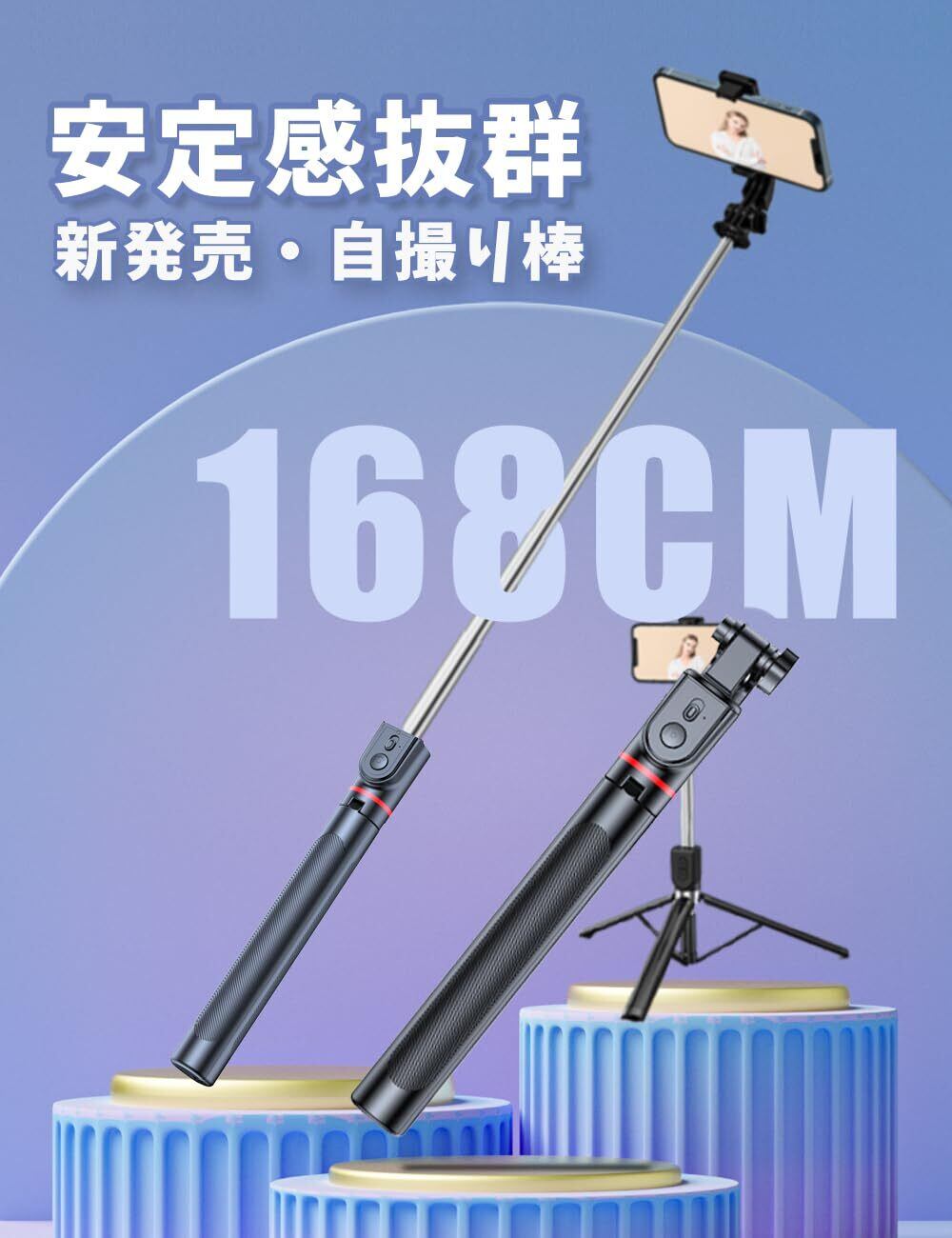 Negolas 自撮り棒 スマホ 三脚 iphone兼用 【設計強化168cm & 7段階伸縮】150cm以上 Gopro セルカ棒 回転 軽量 生放送 Web会議 撮影 映画放送 旅行 遠隔シャッター iPhone/Androidスマホ等対応 【日本語取扱説明書付き】