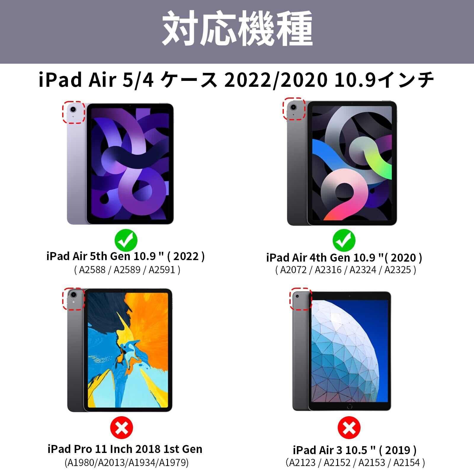 【対応機種】New iPad Air 11インチ(M3) 2025発売 第7世代(モデル番号:A3266/A3267/A3270) / iPad Air 11インチ(M2) 2024発売 第6世代 (モデル番号:A2902/A2903/A2904) / iPad Air 5 2022発売 10.9インチ 第5世代 (モデル番号:A2588/A2589/A2591) / iPad Air 4 2020発売 10.9インチ 第4世代 (モデル番号:A2072/A2316/A2324/A2325)、他のどのiPadモデルにも対応しておりません。(ご注文した時に、ぜひともお手元のiPadのモデルをご確認ください。)
