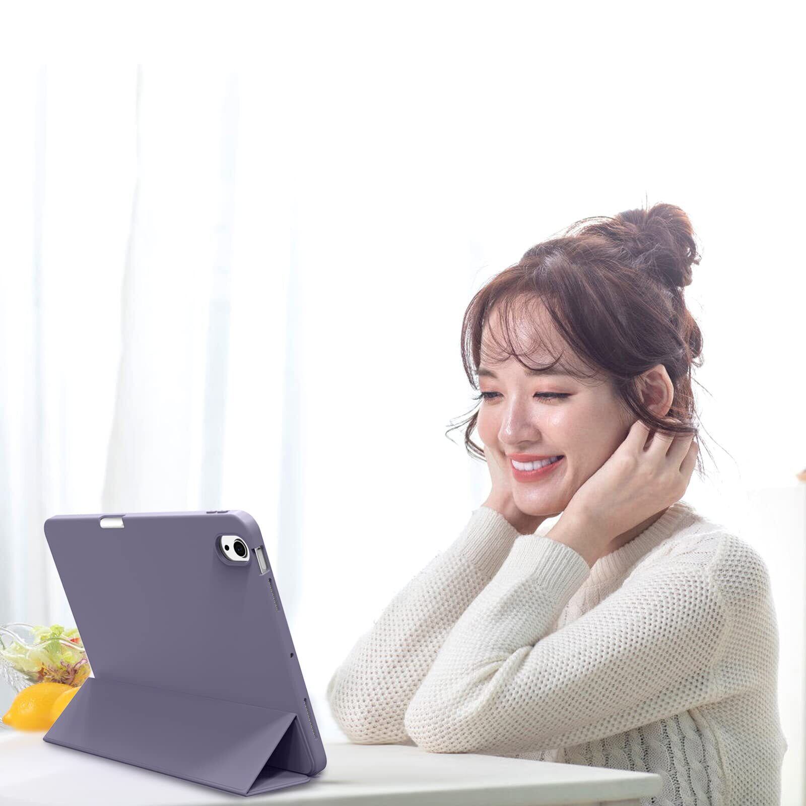 KenKe iPad Air 11インチ ケース (M3/M2、2025/2024) iPad Air 第5/4世代 ケース 2022/2020発売 10.9インチ 軽量 柔らかいシリコン TPU材質 ペン収納 カバー 3段階折り畳み可 スタンド マグネット付き 自動スリープ機能 Apple Pencil 収納可能 ラベンダー色