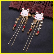 【キツネ ヘアクリップ】おしゃれで人気のある半顔のキツネの髪留めは、タッセル付きで存在感たっぷり、着物や浴衣などの装いにも合わせやすいのが特徴です。 さまざまな個性を持つ女の子に似合いそうです。